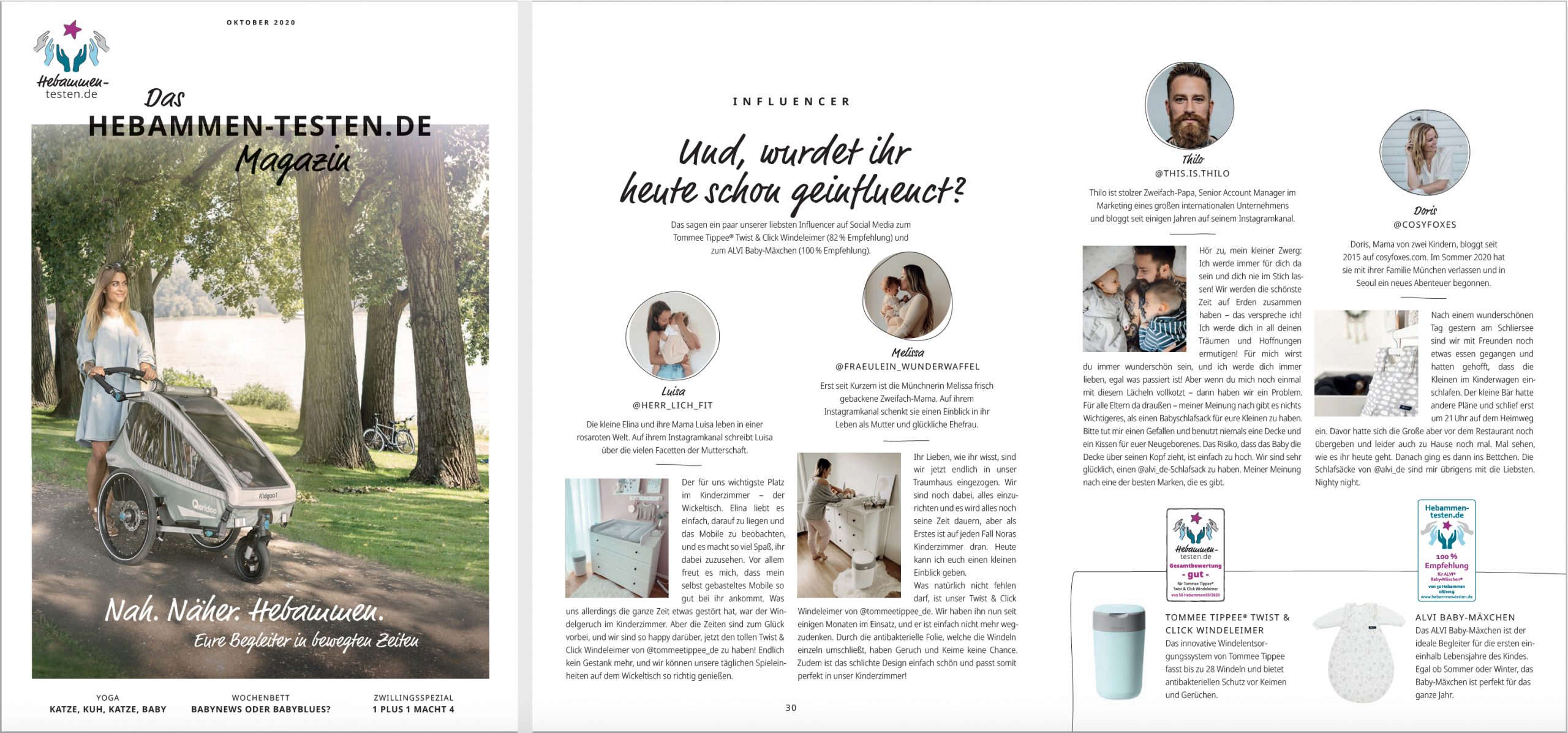 CosyFoxes featrued in the magazine Hebammen testen 10/2020