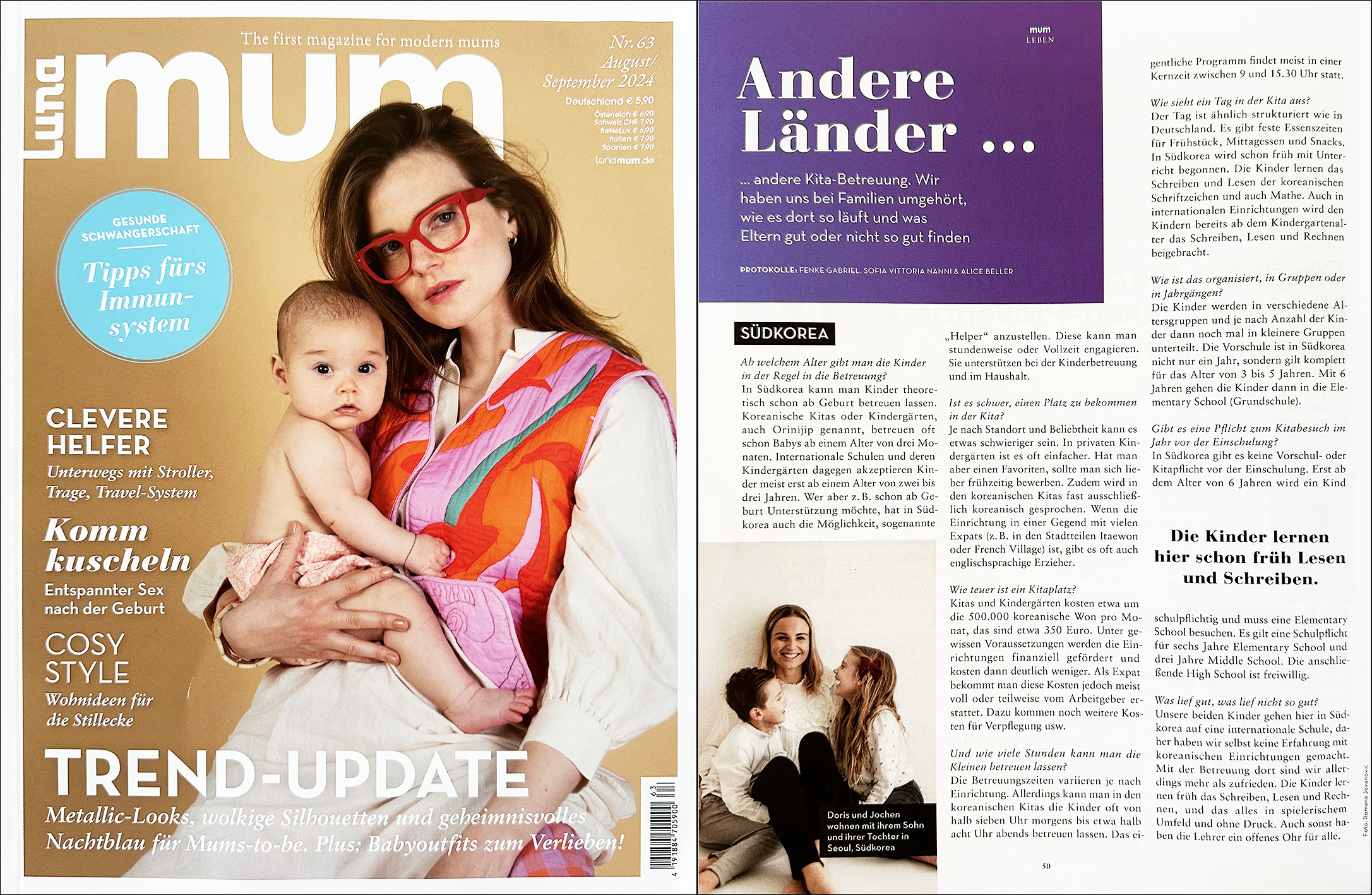 CosyFoxes featured with an interview about child care in South Korea in Luna Mum Magazine Nr. 63 August/ September 2024