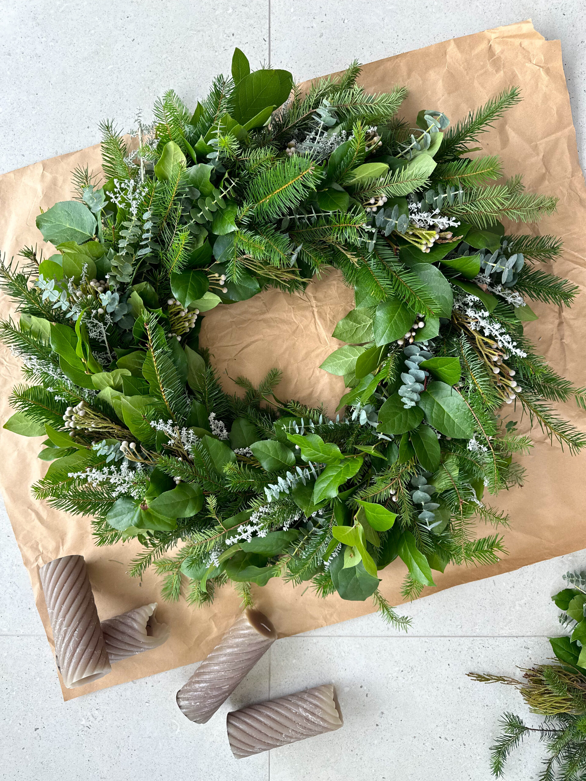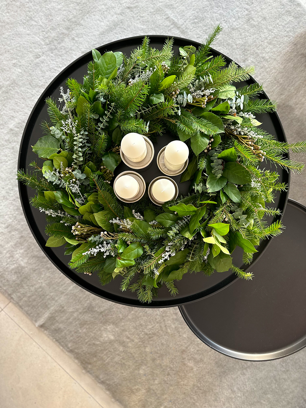 Je länger die Zweige geschnitten sind, desto voller wird der Adventskranz. Ich persönlich mag meine Adventskränze sehr buschig.