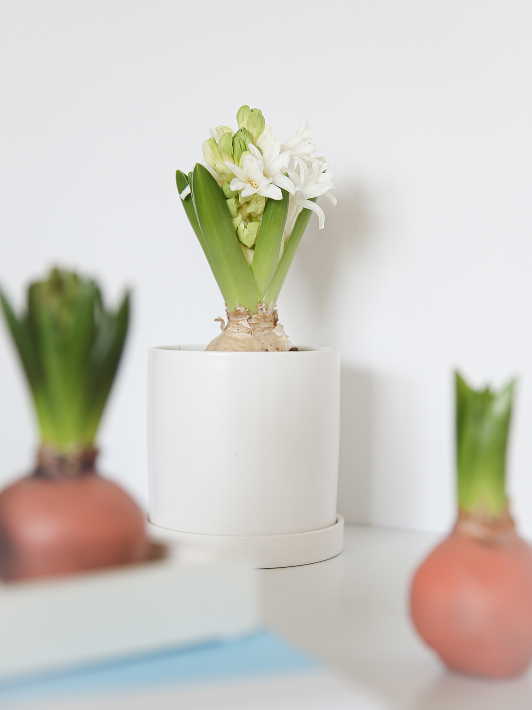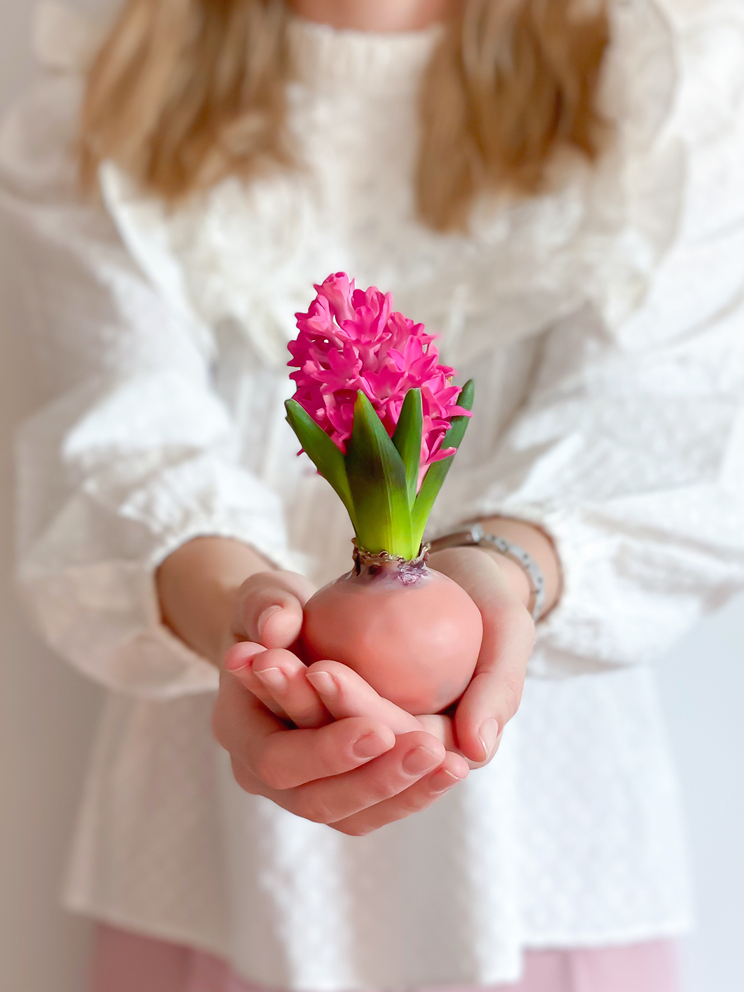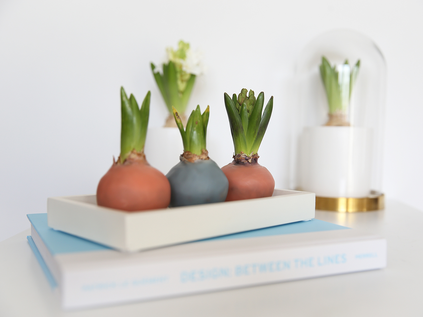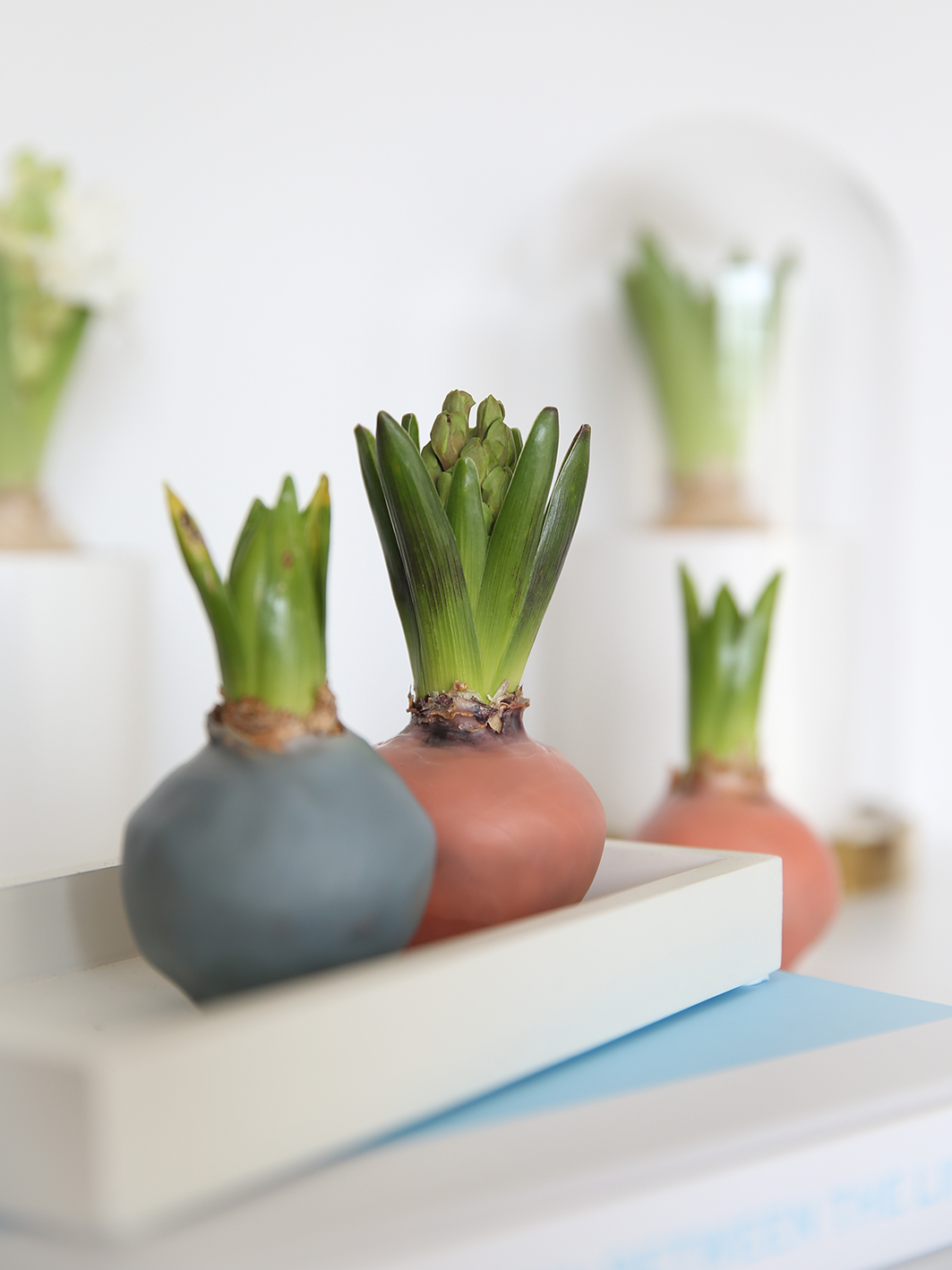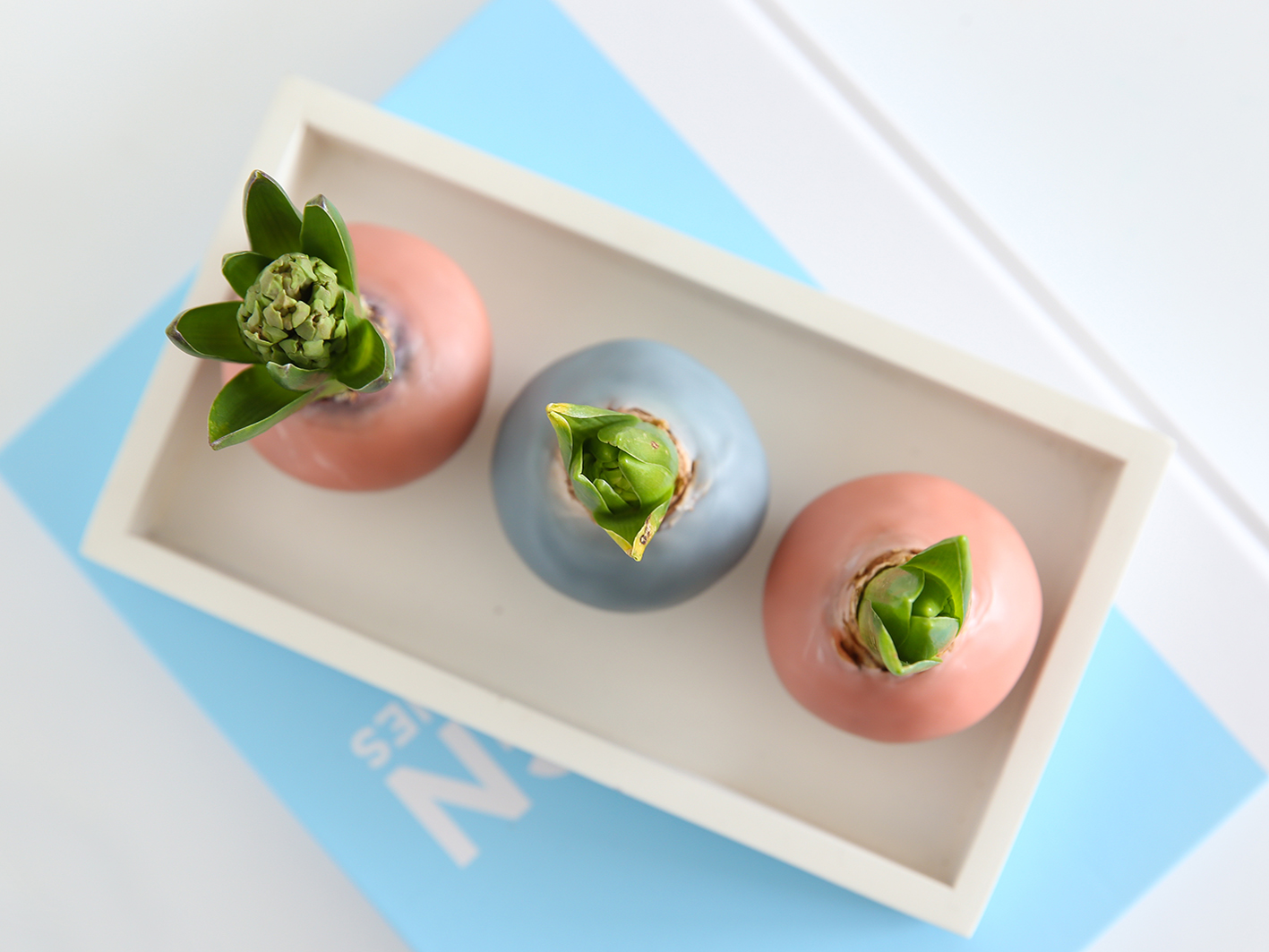 Ich fand das blau und rosa wunderschön für die gewachsten Hyazinthen Zwiebeln. Rein weiß, farbenfroh oder pastellig, den Wünschen sind keine Grenzen gesetzt. Übrigens machen sich die Hyazinthen Zwiebeln auch super als Geschenk für die Liebsten. Sobald die Hyazinthe verblüht ist, könnt ihr das Wachs entfernen und die Zwiebel wieder einpflanzen.