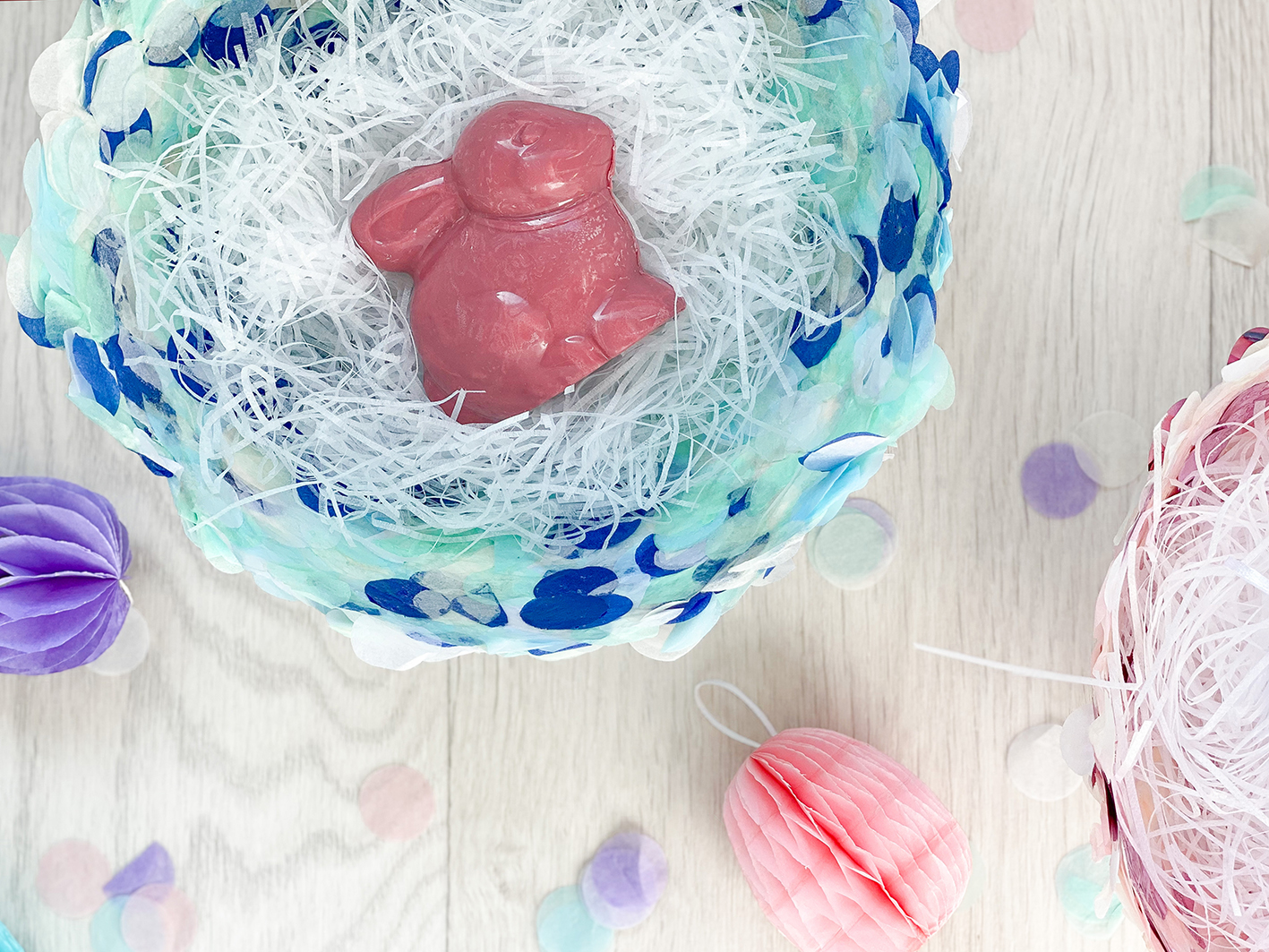 Nach einiger Zeit hatte ich dieses Frühjahr endlich wieder Zeit und Muse um ein paar DIY Ideen umzusetzen. Das Konfetti Osternest DIY habe ich letztes Jahr schon bei meiner Freundin Insa entdeckt und ich war ganz entzückt. Daher mussten wir es auch unbedingt mal ausprobieren. Wie alles bei uns in den vergangenen Wochen, durften hier pastellige Farben einziehen. Für meine Tocher musst es natürlich Rosa und Pink sein. Für meinen Sohn wurde es Mint mit Dunkelblau in einer Mischung mit Weiß.