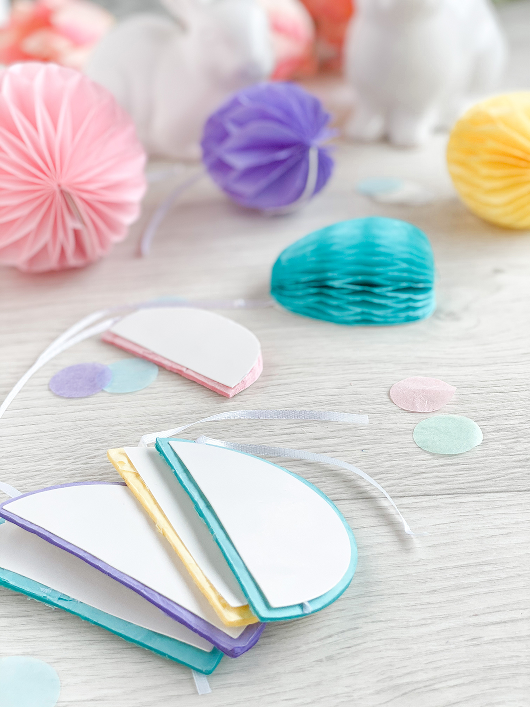 Ihr könnt die Ostereier Anhänger natürlich auch kleben anstatt die Büroklammer zu nutzen, aber dann ist es wahrscheinlicher, dass sie beim Aufbewahren für das kommende Oster kaputt gehen. Da ist die Büroklammer doch die etwas einfachere und sicherere Variante. Bezüglich der Größe seid ihr natürlich flexibel, aber ich würde nicht zu groß gehen, da sie sonst schnell zu wuchtig wirken. Außerdem weiß ich, dass gefühlt alle auf Weiß- Beige- und Erdtöne stehen, wenn es um diese hübschen Osteranhänger geht, aber ich fand diese Farben auch ganz hübsch zur Abwechslung. Oder was meint ihr?