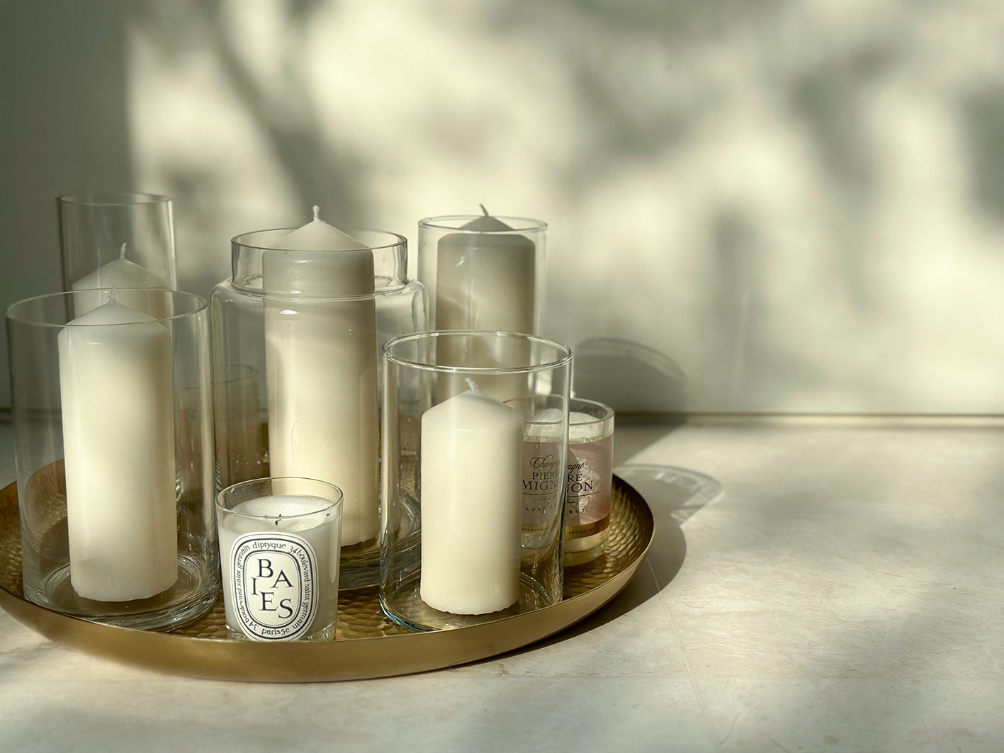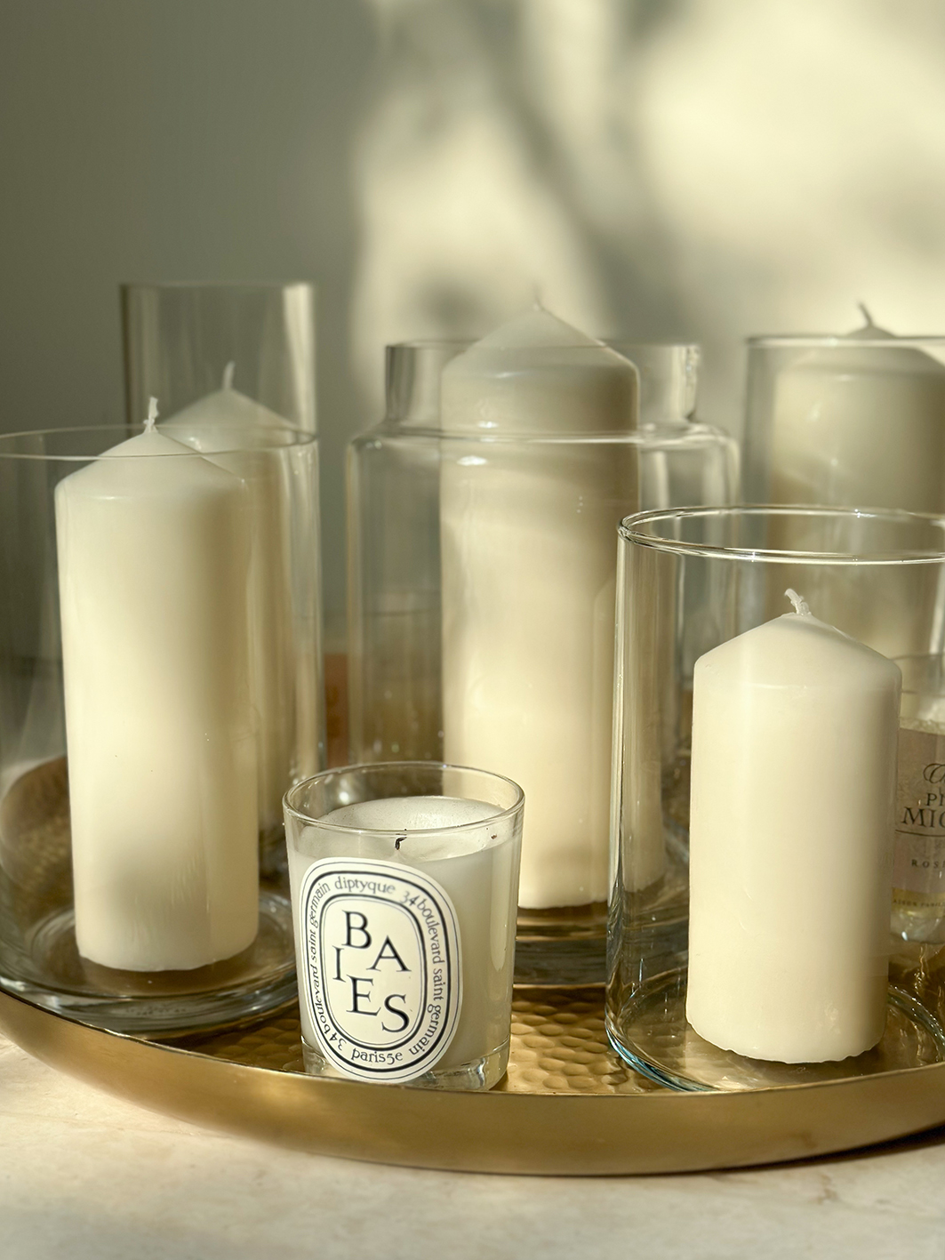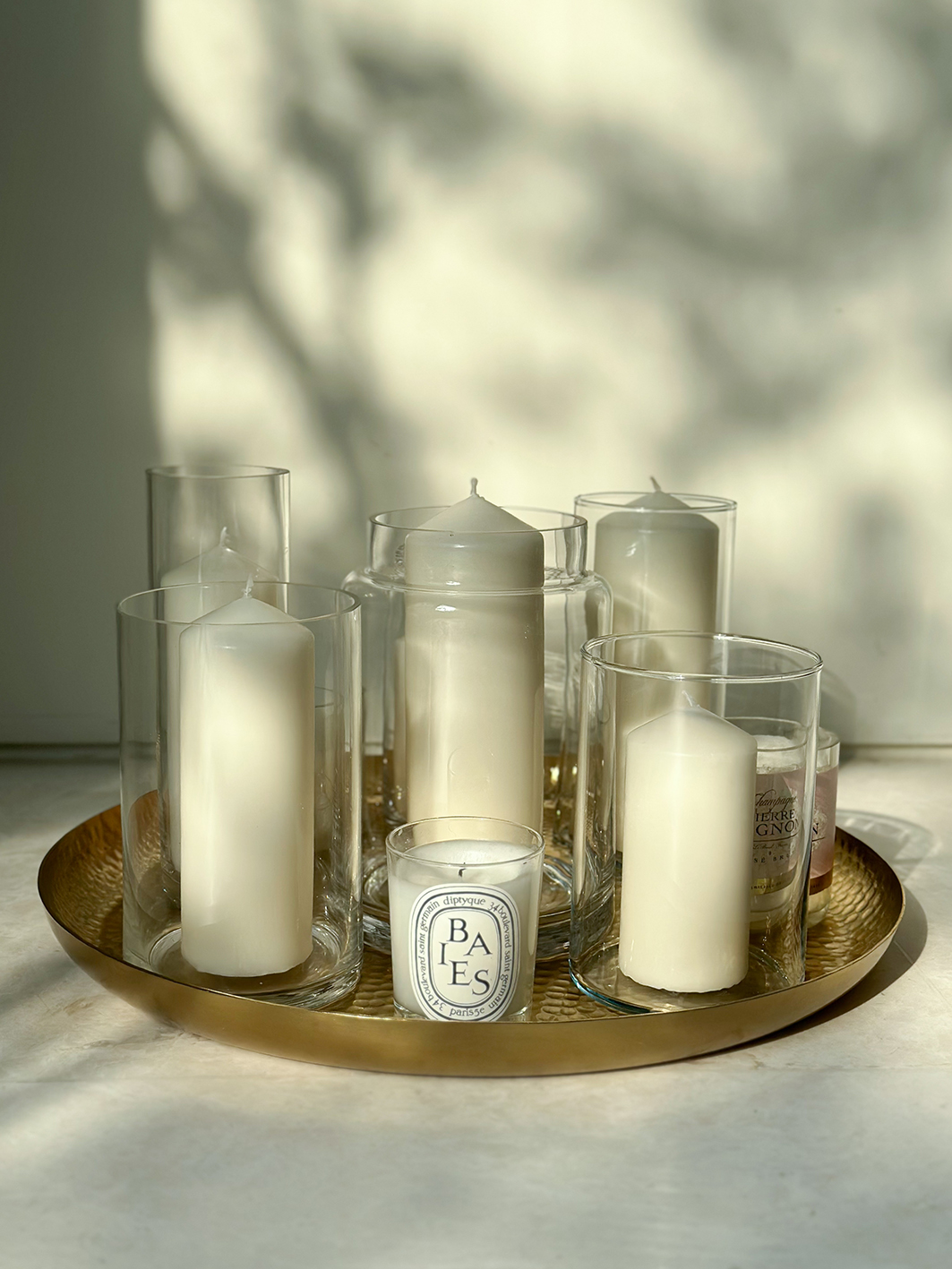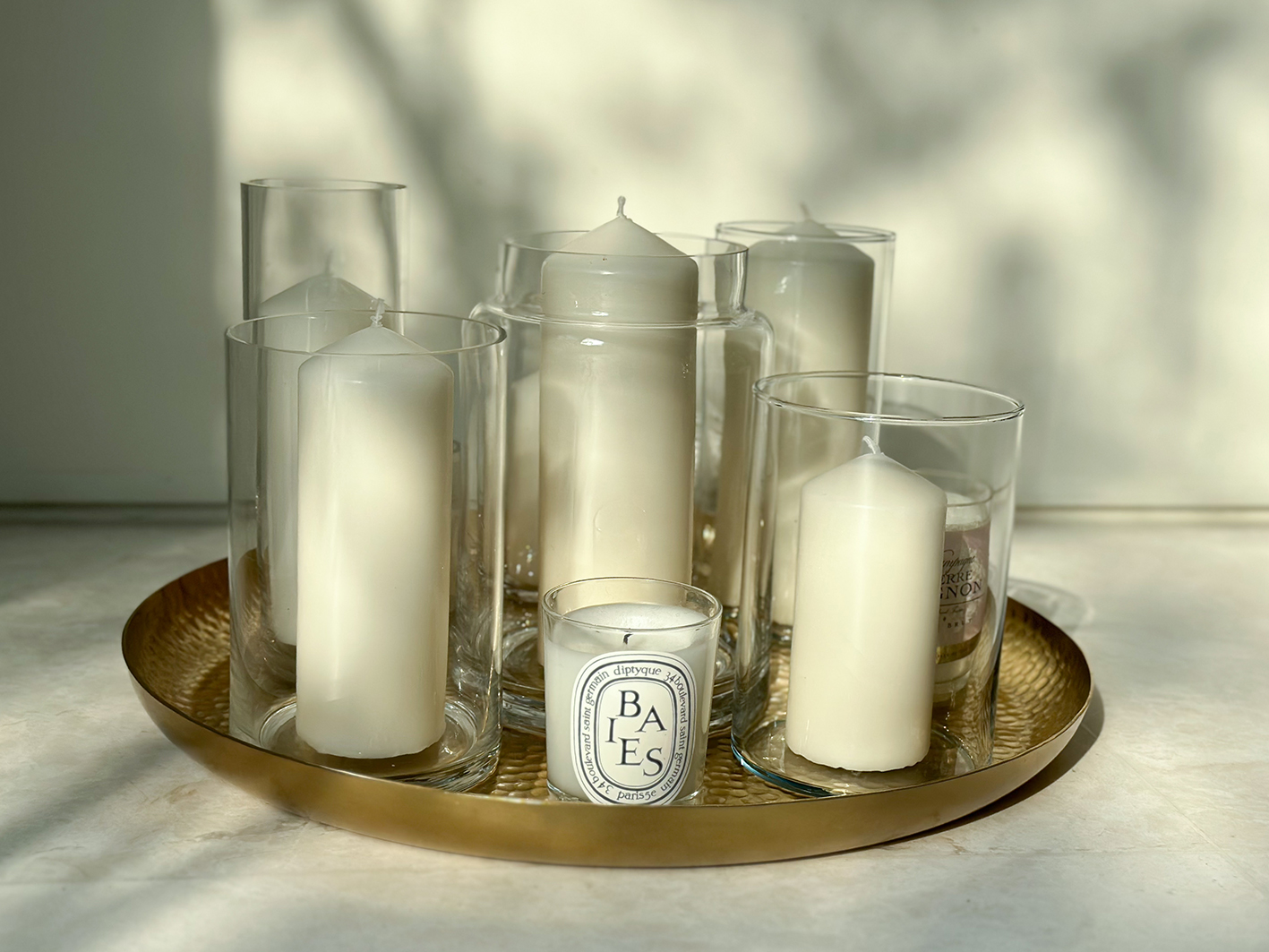 - Weiße Deko-Kerzen in Gläsern, verschiedene Größen