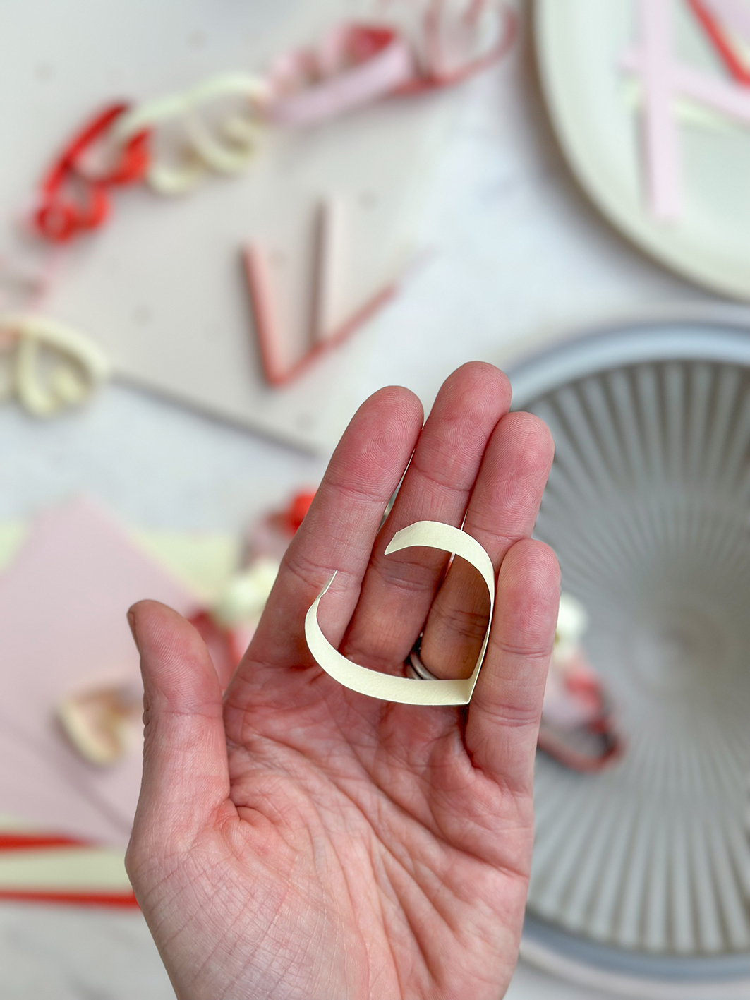 2. Die beiden Enden vorsichtig mit den Fingern nach innen zu herzförmigen Bögen formen.