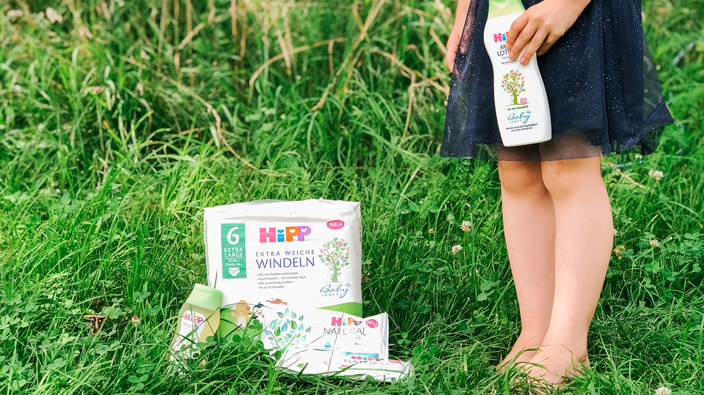 HiPP legt übrigens viel Wert auf nachhaltige Verpackung und Herstellung. Durch Optimierungen der Verpackungen spart das Unternehmen jährlich etwa 13t Material ein und reduziert somit auch noch den CO2 Verbrauch. Zudem bestehen die Faltschachteln aus 80% Rezyklat, einem wiederverwendbaren Material. Alle HiPP Babysanft Pflege-Verpackungen haben eine sehr hohe Recyclingfähigkeit und zudem wird ein großer Teil des Sortiments in einem klimaneutralen Werk mit 100% Ökostrom hergestellt. Alles der Umwelt zuliebe.