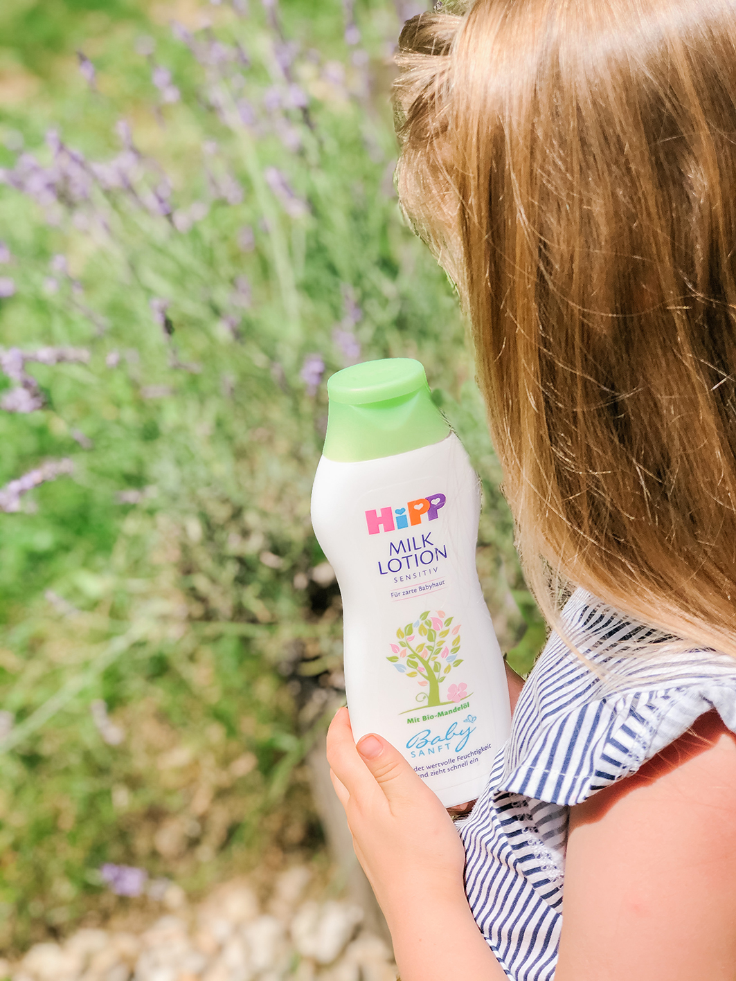 Auch super für Groß und Klein ist die HiPP Milk Lotion. Übrigens nicht nur für die Kids super geeignet, auch ich creme mich gerne mal damit ein. Ich neige leider auch zu trockener Haut. Gerade für unterwegs ist die Lotion super praktisch, weil wir dann alle ein und dieselbe Milk Lotion verwenden. Babysanfte Haut für die ganze Familie.