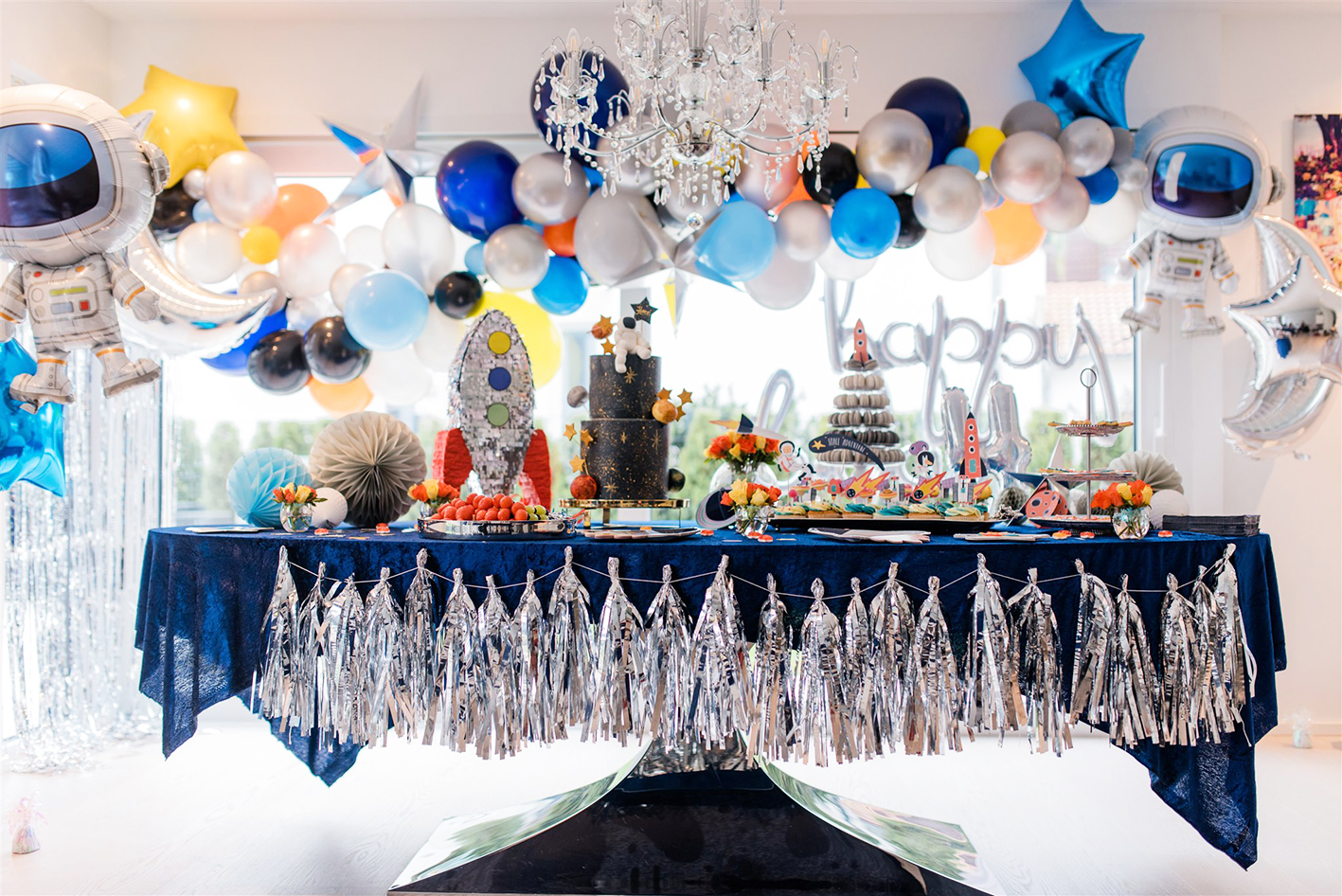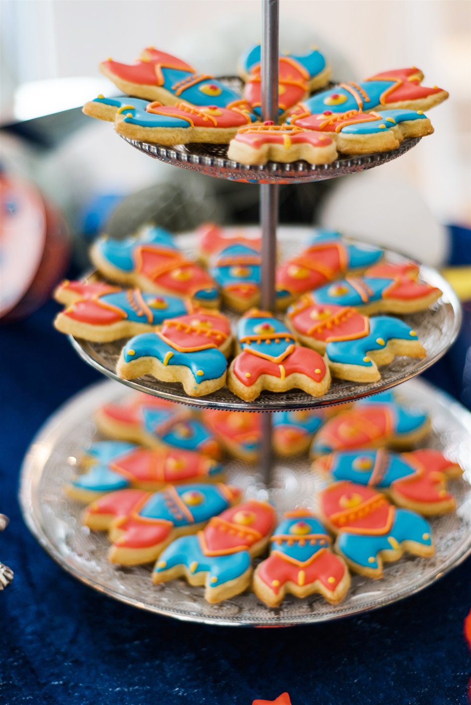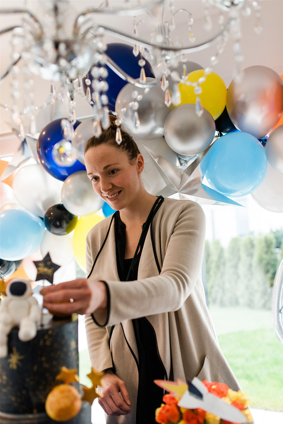 Vorgegeben waren lediglich die Farben Blau, Gelb, Orange, Rot und Silber. Beim Rest durfte sich jeder austoben, wie er mochte. Natürlich habe ich mich bei meinen Raketenkeksen an die Farbauswahl gehalten und habe sie entsprechend mit einem Royal Icing dekoriert. Am liebsten hätte ich sie alle selbst gegessen, aber habe ich natürlich nicht. Claudia hat sich mit der Deko einfach selbst übertroffen. Den 4. Geburtstag des kleinen Henris hat sie gleich zum Anlass genommen und das Motto in ihren Shop inabox mit aufgenommen. Dort bekommt ihr die Party in der Box. Darin findet ihr alles an Deko, Spieleideen und sogar Backanleitungen inbegriffen. Alles, was man für eine Party benötigt. Der Kuchen und die Macarons hatte Alexa beigesteuert. Wundervoll, was sie gezaubert hat nebst ihrem Cafe in München Bogenhausen. Die Weltraumtorte war einfach ein Traum. Und wie süß der kleine Astronaut obenauf saß.
