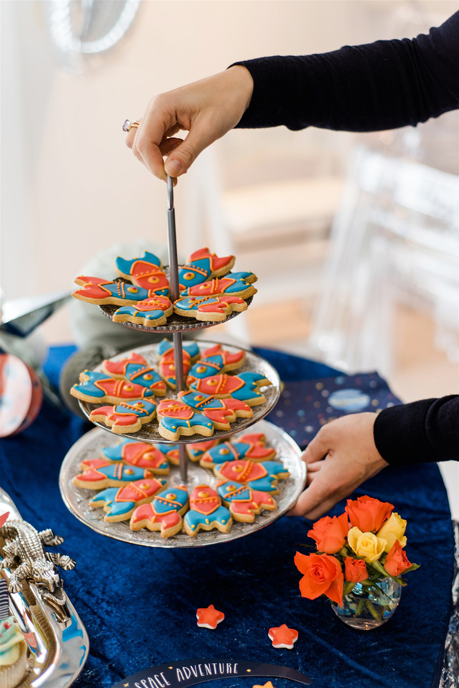 Raketen und Weltall sind doch das perfekte Motto für eine Geburtstagsparty. Vor allem für einen kleinen Jungen. Als ich gefragt wurde, ob ich nicht Lust hätte ein paar Kekse für ein tolles passendes Projekt beizusteuern, habe ich mich natürlich sehr gefreut. Ich liebe es ja für Freunde zu backen. Also konnte ich nicht nein dazu sagen. Der ganze Geburtstag hätte einfach nicht perfekter sein können. Die Location war das wunderschöne Zuhause von Nadine, die Deko kam von Claudia und der Kuchen war von der lieben Alexa. Fotografiert hat das Ergebnis am Ende die Felicitas.