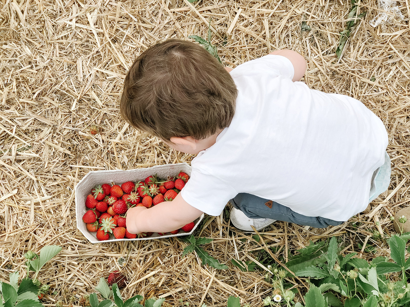 Beide Kinder hatten ihren Spaß und es landeteten definitiv mehr Erdbeeren im Bauch als im Korb. Aber am Ende war auch dieser randvoll. Die roten Früchte gab es dann entweder zum Nachtisch oder einfach mal zwischen durch. Falls ihr auf der Suche nach Erdbeerfeldern in und um München seid, kann ich euch Storz Erdbeerkulturen empfehlen. Über die Ernteauskunft am Telefon erhaltet ihr Infos zu sämtlichen Erdbeerfeldern und deren Öffnungszeiten.