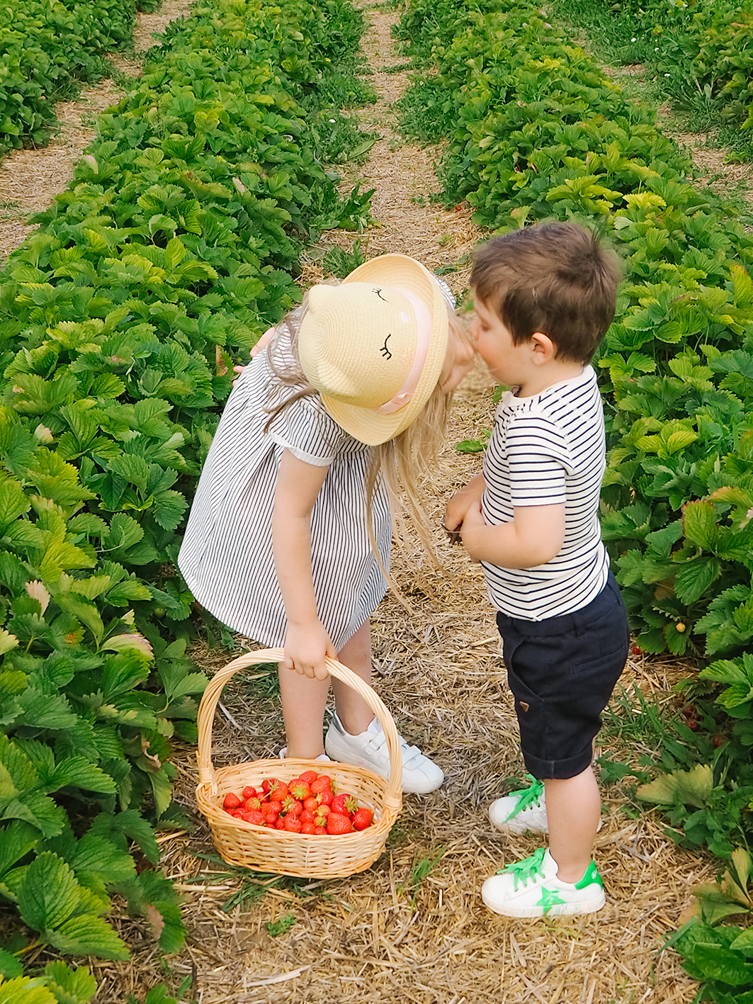 Wir hatten es uns ja zu einer kleinen Tradition gemacht, mindestens ein mal im Jahr selbst Erdbeeren zu pflücken. Ich liebe es, wenn die Kinder voller Elan übers Erdbeerfeld jagen und eifrig rote Erdbeeren sammeln. Da wir ja so ziemlich im Umzugsstress sind, dachte ich tatsächlich, dass wir es dieses Jahr gar nicht mehr schaffen würden. Nachdem aber das meiste an To-Dos abgearbeitet war, hatten wir doch noch Zeit dafür. Dieses mal waren wir allerdings nicht in München sondern in Moosburg. Das war hauptsächlich dem Zustand geschuldet, dass wir vor unserem Flug nach Seoul noch vorübergehend bei meinen Eltern einzogen.