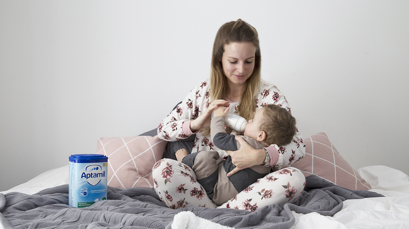 Auch der richtige Moment spielt eine große Rolle. Ist ein Baby zu hungrig oder gar müde, hat es tendenziell weniger Lust, Neues auszuprobieren. Außerdem sollte man auch vermeiden nach ersten missglückten Versuchen gleich die Nahrung zu wechseln. Manchmal dauert es einfach, bis man sich an einen neuen Geschmack gewöhnt hat. Das geht einem als Erwachsener ja selbst auch manchmal so. Zu guter Letzt sollte die Flaschennahrung immer frisch zubereitet werden. Wie normale Milch auch, ist warme Milch ein Nährboden für Keime. Das sollte unbedingt verhindert werden. Falls etwas überbleibt, bitte wegschütten und nicht nochmals verwenden. Ein paar mehr Informationen und hilfreiche Tipps zum First Bottle Syndrom findet ihr übrigens auch nochmal ausführlicher auf der Seite von Aptamil selbst. Zudem hat Aptawelt einen Elternservice aus Ernährungsexperten, den ihr kostenlos an 7 Tagen, rund um die Uhr, kontaktieren könnt, wenn ihr Fragen zur Umstellung auf das Fläschchen oder zur gewählten Flaschennahrung habt. Übrigens könnt ihr ab einem Alter von ca. 10 Monaten auch einen Becher zum Trinken anbieten. Somit würde die Flasche komplett wegfallen.