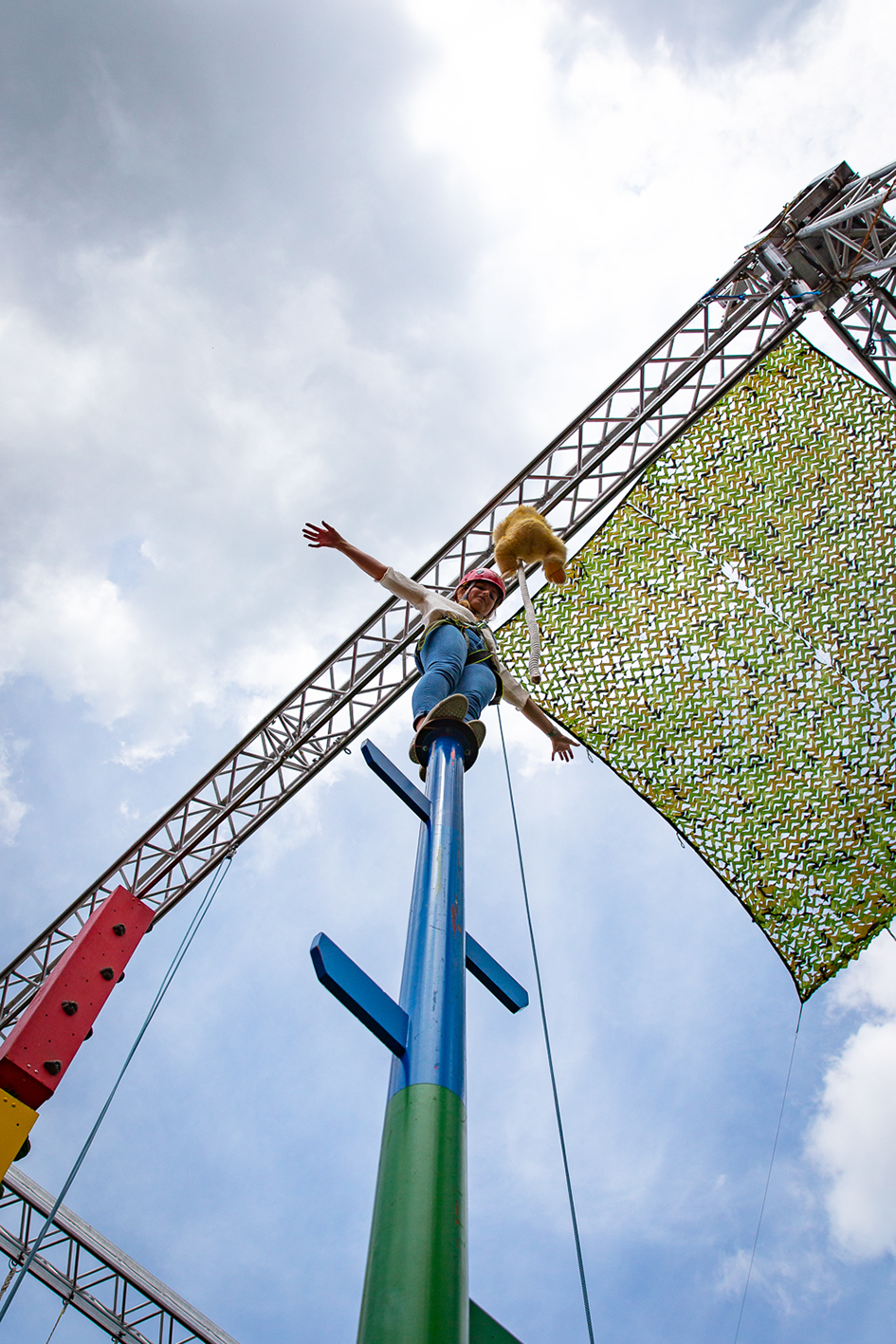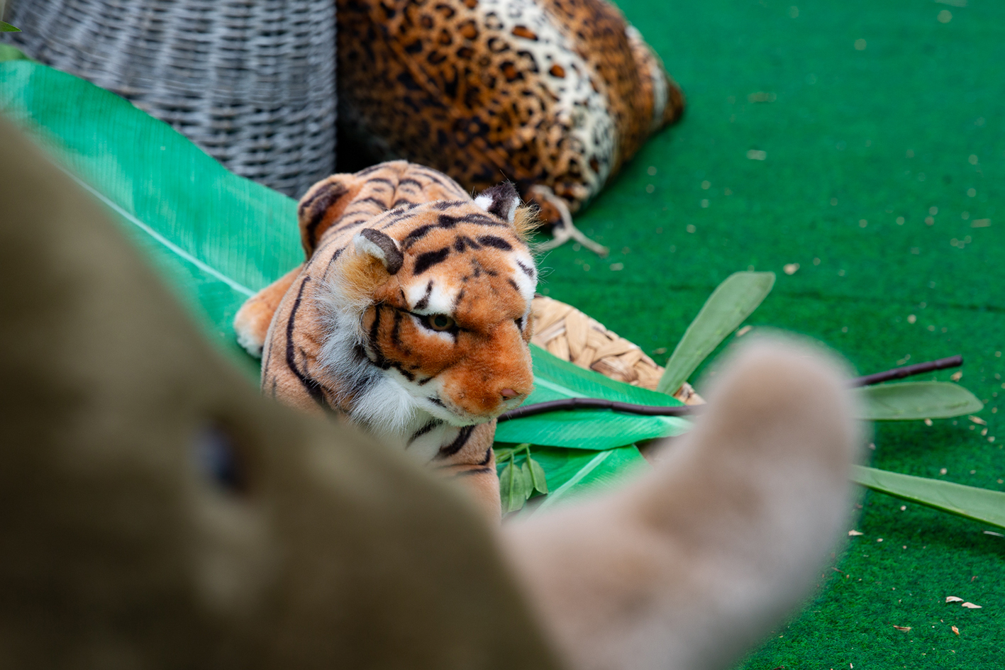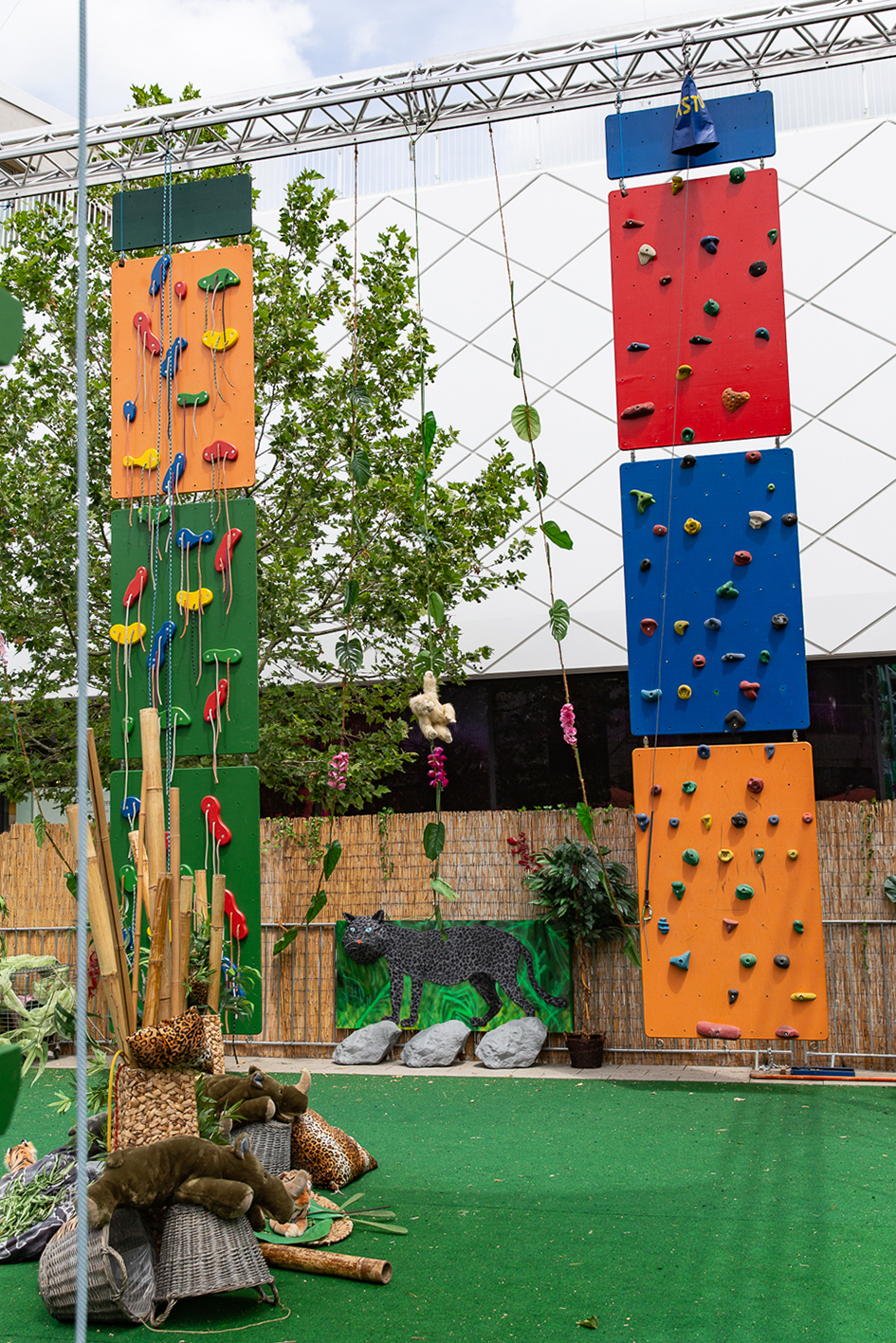 At a height of 8 meters there were various stations for “old and young” in the Pasing Arcaden until June 22, 2019. Everyone from a height of 1.20m on was able to train the balance and simply climb. Since I have no problems with height, that was the smallest problem for me. Knowing that you’re secured with a harness and rope made it easy for me. However, I immediately noticed from the second station on that I have quite some lack of fitness. The kids in front of me were much faster than me. But I have to say, I really enjoyed climbing. At the various stations, I loved how the `Jungle World` high ropes course was decorated. At the Paeso at the Pasing Arcaden they managed to get some jungle feeling into the city. Real plants, light and sound effects and a few wild animals have created a great atmosphere.