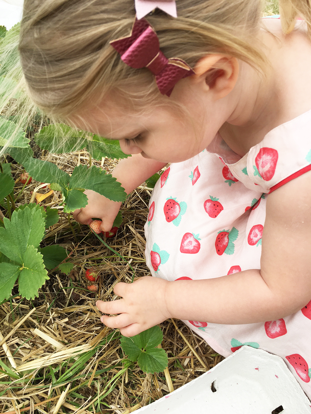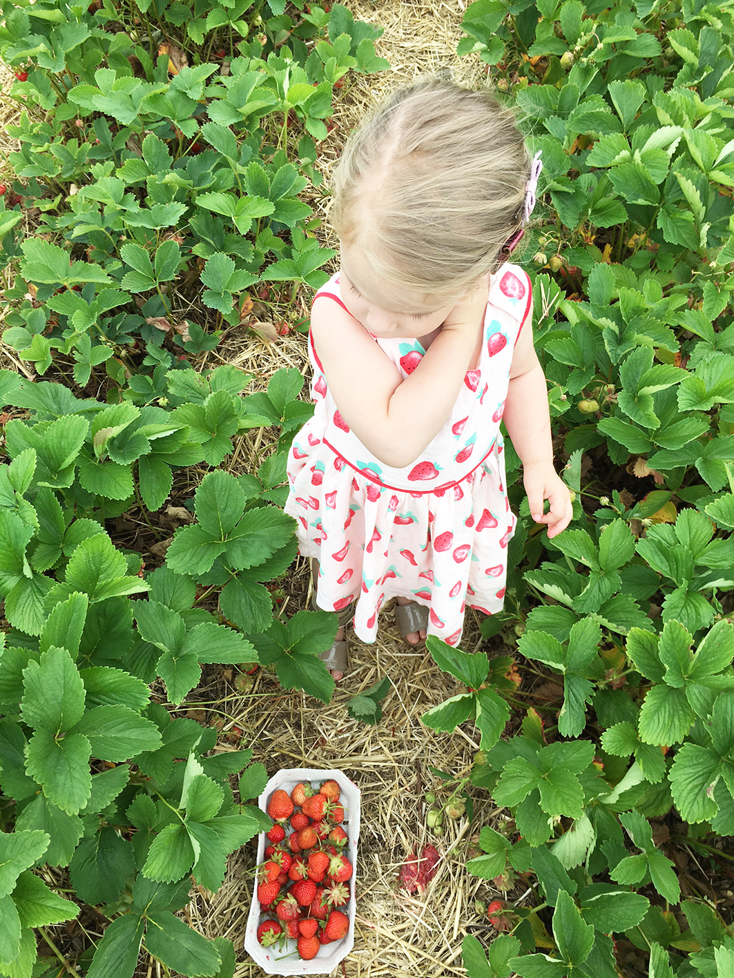 Gesagt und getan: Meine kleine Tochter angezogen (das passende Erdbeer-Kleid war einfach perfekt für solch einen Ausflug), sie in das Auto gepackt und log gings. Wir wie letztes Jahr schon wieder zuStorz Erdbeerkulturen in die Siemensallee 4 in München und an einem Montagmorgen waren fast keine Leute auf dem Feld. Ich würde sagen: Jackpot. Und natürlich habe ich es mir nicht nehmen lassen, ein paar Fotos von meinem hübschen Mädchen zu machen, das Erdbeeren pflückt und isst. Was wir am Ende mit nach Hause brachten, nahmen wir am Nachmittag noch mit ins Schwimmbad.