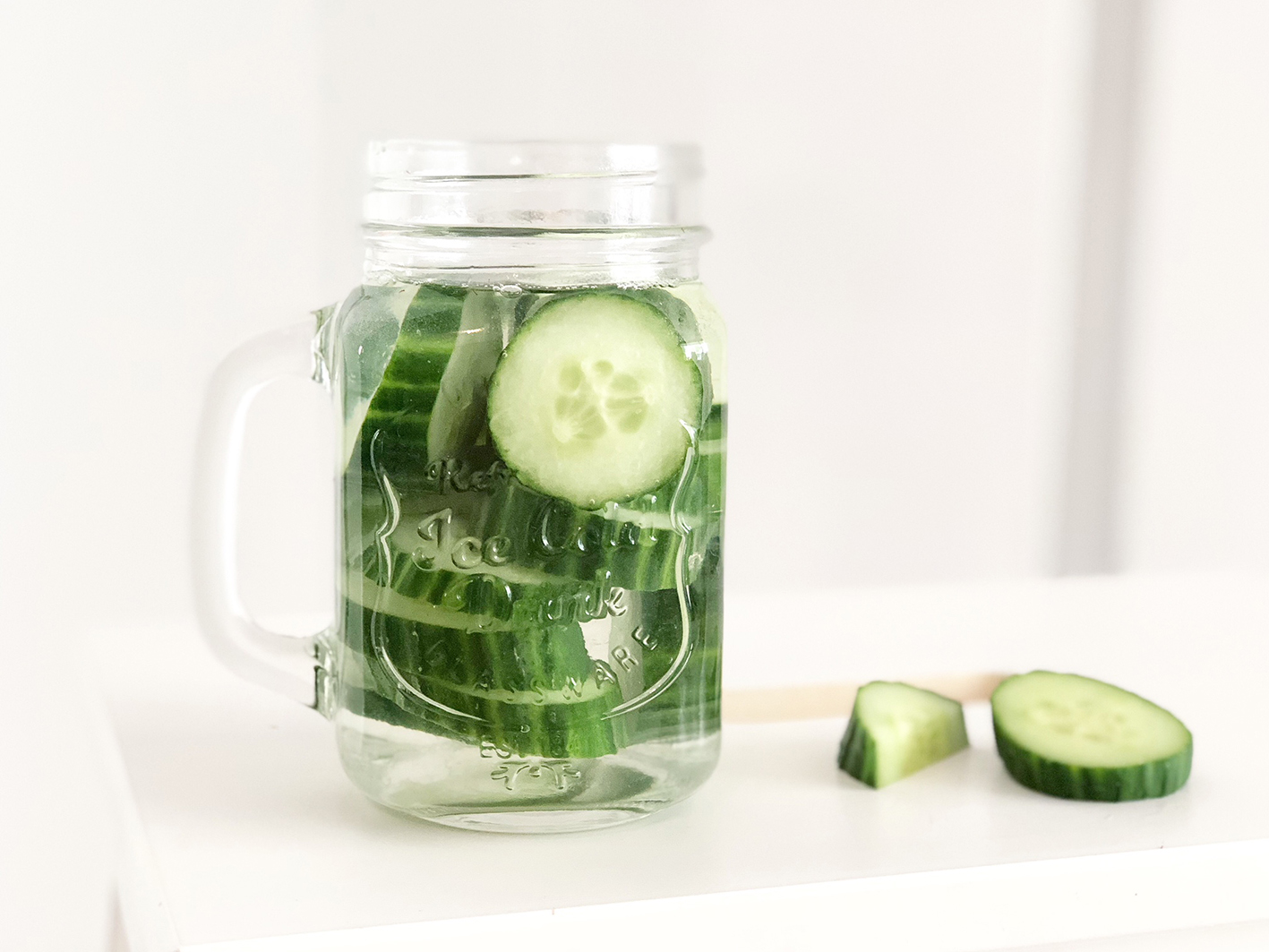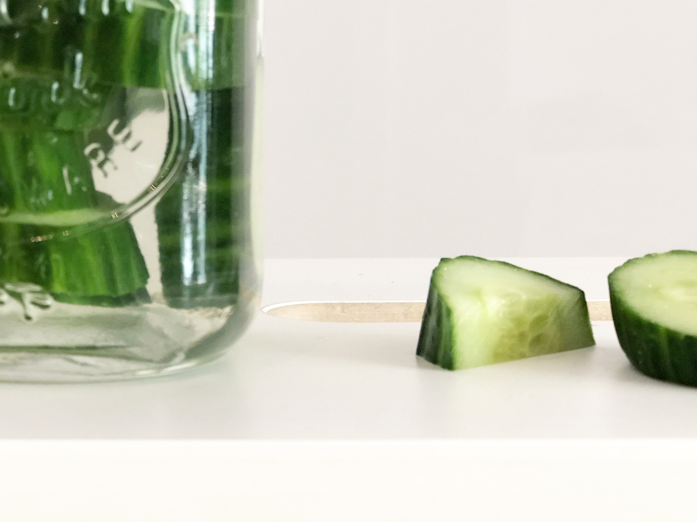 Those 3 versions of infused water are all really simple to do. Cut the fruit or vegetable into slices, put them into the water and squeeze them a tiny bit for some more taste. My personal favorite is the version with cucumber and crushed black pepper. Just use a tiny bit of the pepper gives you a summer Gin Tonic feeling.