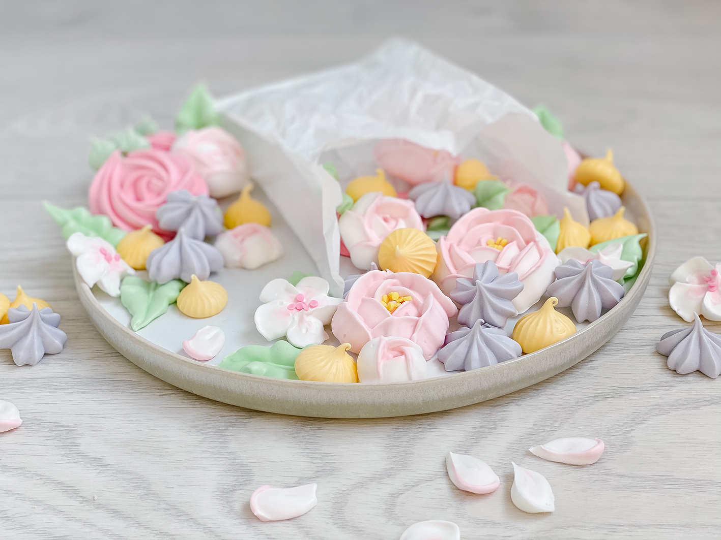 Wie so viele Anlässe, findet auch Muttertag dieses Jahr unter erschwerten Voraussetzungen statt. Kontaktbeschränkungen, Angst vor einer Covid Ansteckung und (bei uns) die Entferung aus Seoul machen es nicht gerade einfach. Normalerweise würde es für meine Mama einen Blumenstrauß und z.B. selbstgemachte Pralinen geben. Da ich die Blumen dieses Jahr nicht einfach mal so vorbeibringen kann, habe ich mir etwas besonderes ausgedacht: Einen Baiser Blumenstrauß zum verschicken, verschenken und vernaschen aus bunten Meringue Blumen.