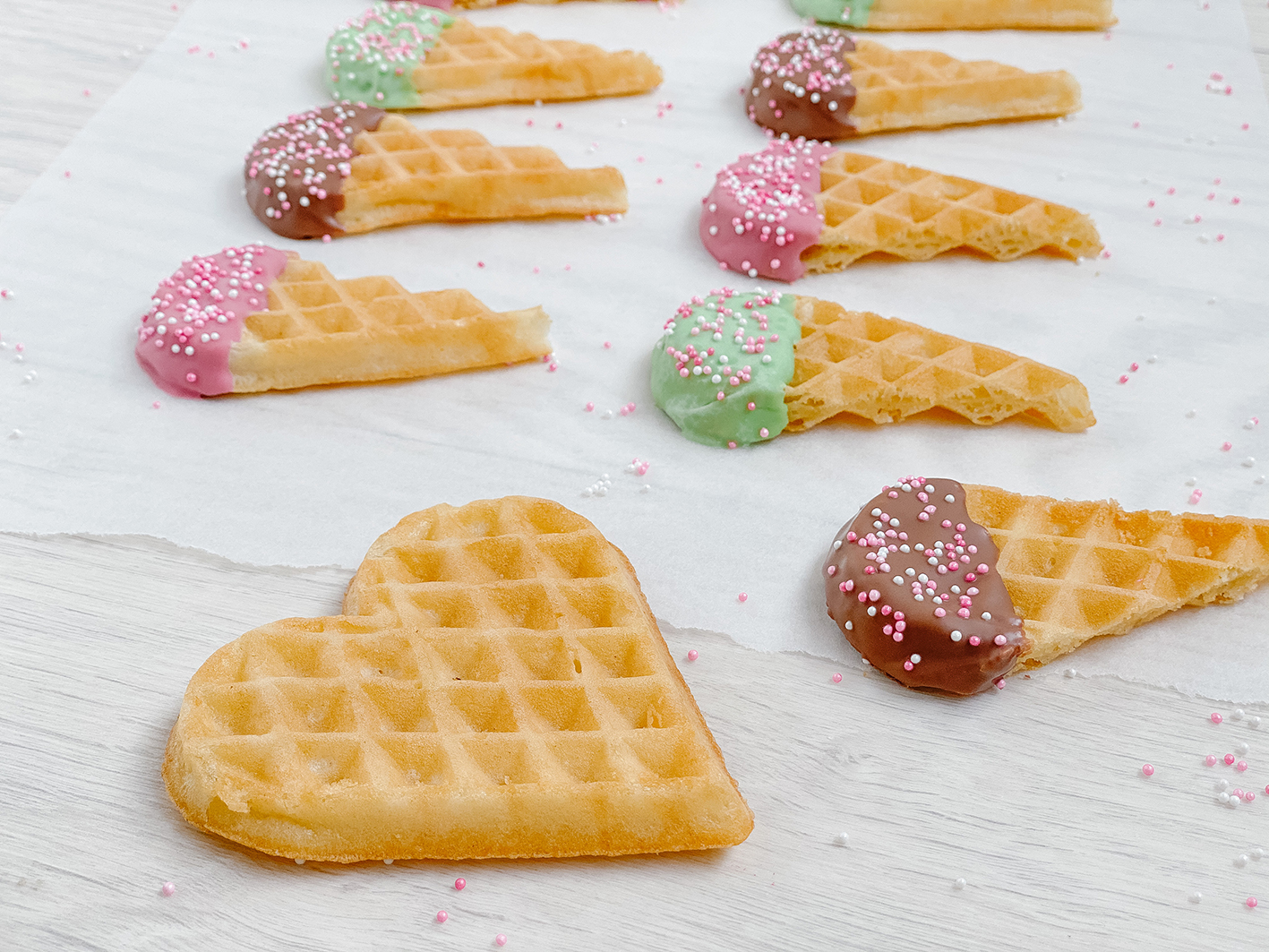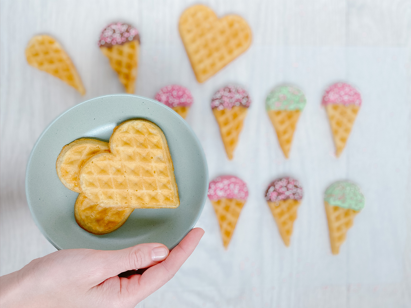 Herzwaffeln gehören bei uns definitiv mit zu den Lieblingsrezepten. Tatsächlich gibt es die meist eher im Winter als im Sommer. Diese süße Kreation in Form von Eiswaffeln macht aber doch eher Lust auf den Sommer, oder? Optisch als Erdbeer-, Schoko- oder Pistazieneis mit Streuseln getarnt, sind die eigentlich klassichen Herzwaffeln doch richtige Hingucker als Eis Herzwaffeln.
