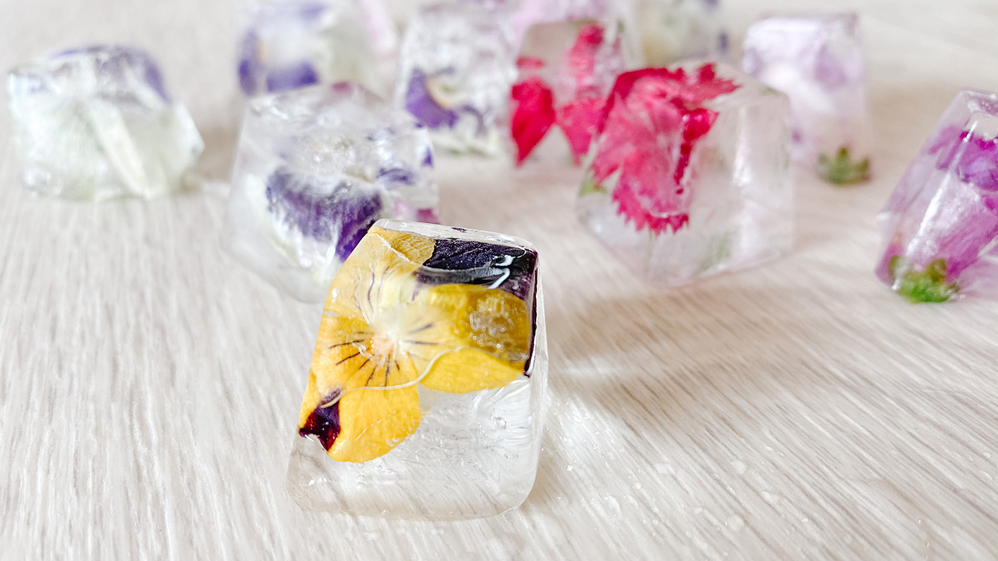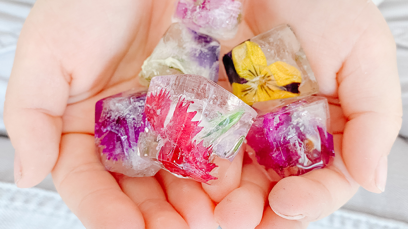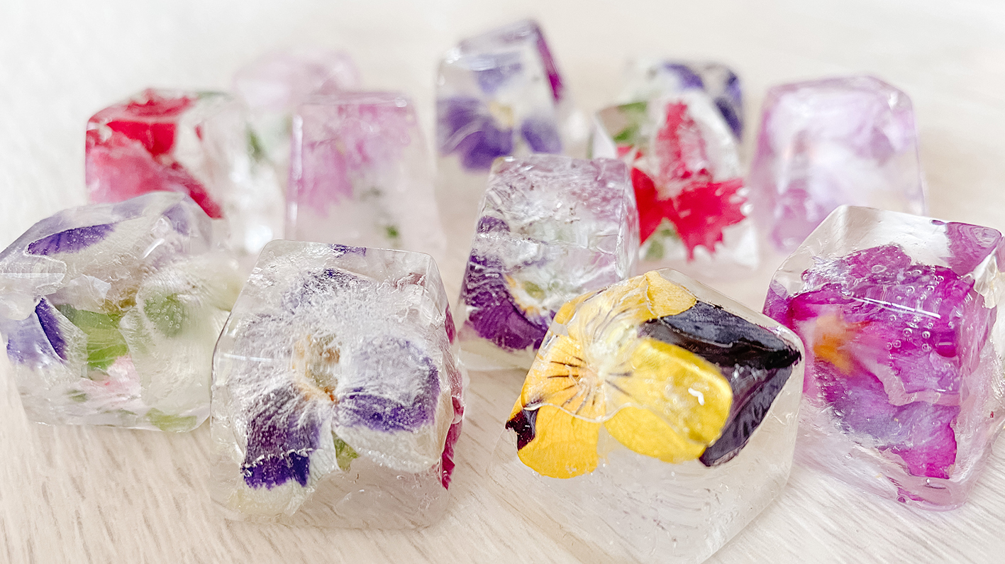Im Endeffekt ist es nicht schwierig Flower Ice Cubes zu machen. Ihr setzt die Blüten in eine Eiswürfelform und füllt diese mit Wasser auf. Es gibt verschiedene Möglichkeiten. Entweder ihr füllt die Form gleich komplett mit Wasser auf oder erst mal zur Hälfte. Wenn das Wasser gefroren ist, könnt ihr den Rest auffüllen und weiter in die Tiefkühltruhe geben.