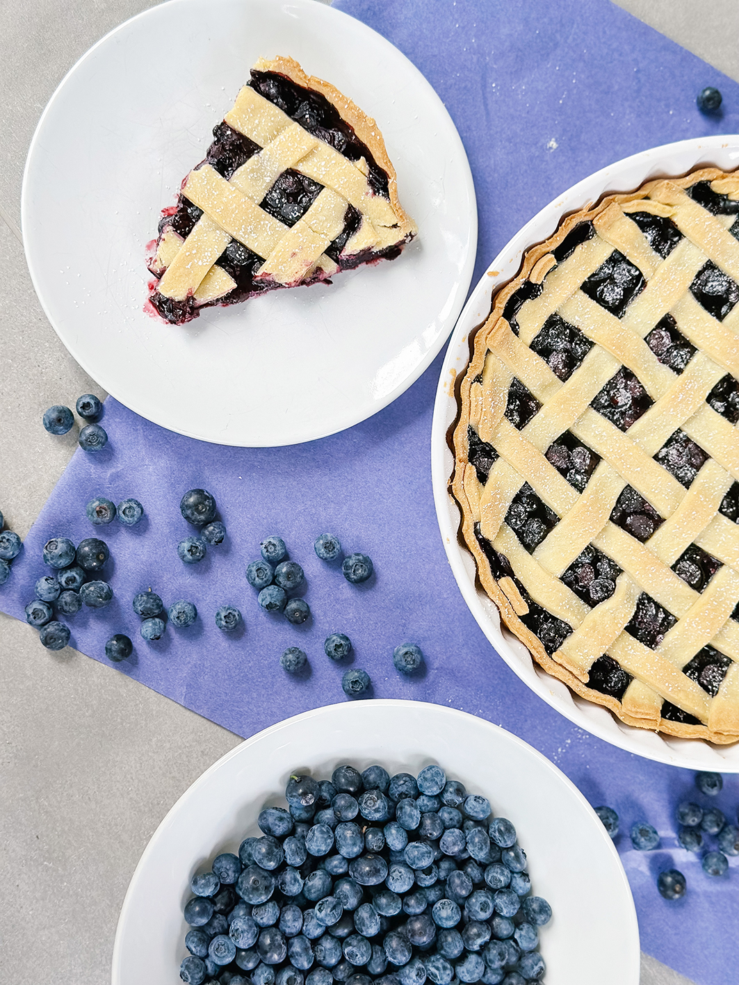 Ein heißer gedeckter Blaubeerkuchen zerläuft etwas beim Anschnitt, weil die Blaubeermasse dann noch sehr flüssig ist. Wer das nicht mag, einfach warten, bis er abgekühlt ist, dann stockt die Masse etwas und lässt sich leichter schneiden.