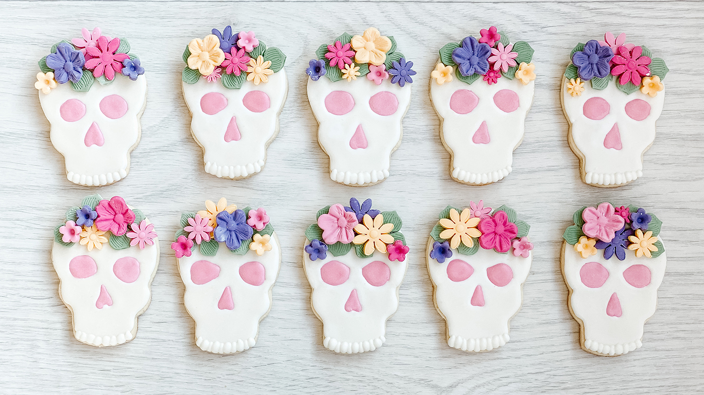 Süßes oder Saures?! Na da nehme ich doch lieber Ersteres. Geister und Totenköpfe sind ja zu Halloween wirklich ein Muss. Nach meinen Gespenster-Keksen und dem passenden Kuchen vom letztem Jahr, durften dieses Jahr endlich Totenköpfe in den Blog einziehen. Allerdings sollten sie etwas Besonderes werden. Daher habe ich den Totenköpfen hübsche Blumenkronen, auch Flowercrowns genannt, verpasst.