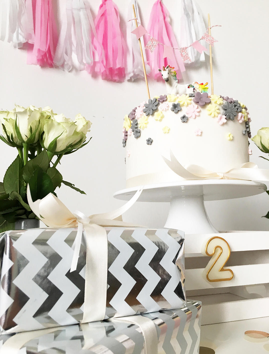 - Presents are a must on birthdays and as C got a few small ones we also added them to the table with matching wrapping paper and ribbon.