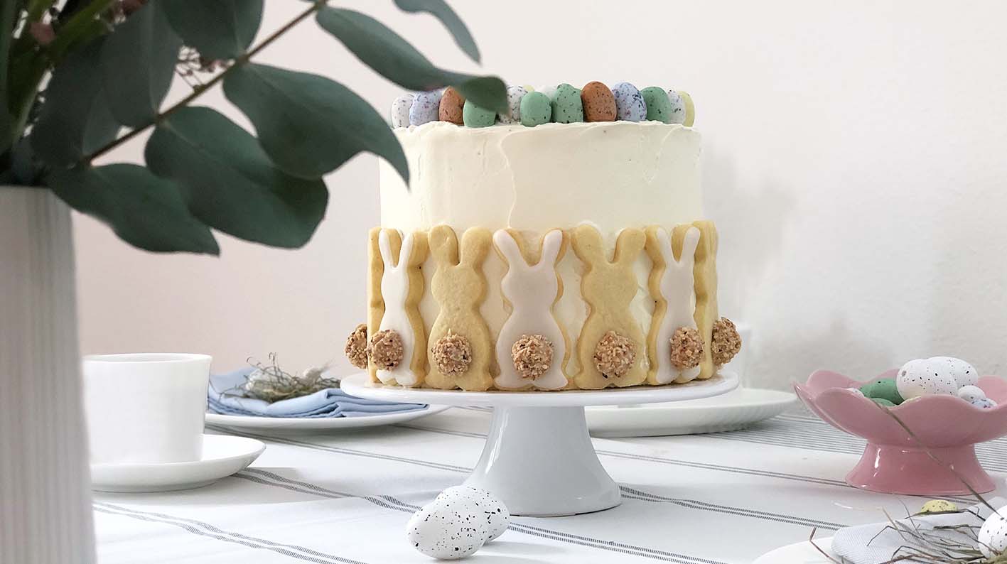 Die Kekse eignen sich übrigens auch perfekt für eine Hasen-Torte zu Ostern. Das passende Rezept mit Karottenkuchen und Frischkäsefrosting findet ihr auch hier auf dem Blog. Und wer noch gerne etwas mehr Osterhasen-Inspiration braucht, wird bei mir sicher fündig. Übrigens findet ihr auch eine wunderschöne Version der Hasenkekse mit Giotto-Popo in Pastell bei mir, einfach hier entlang.