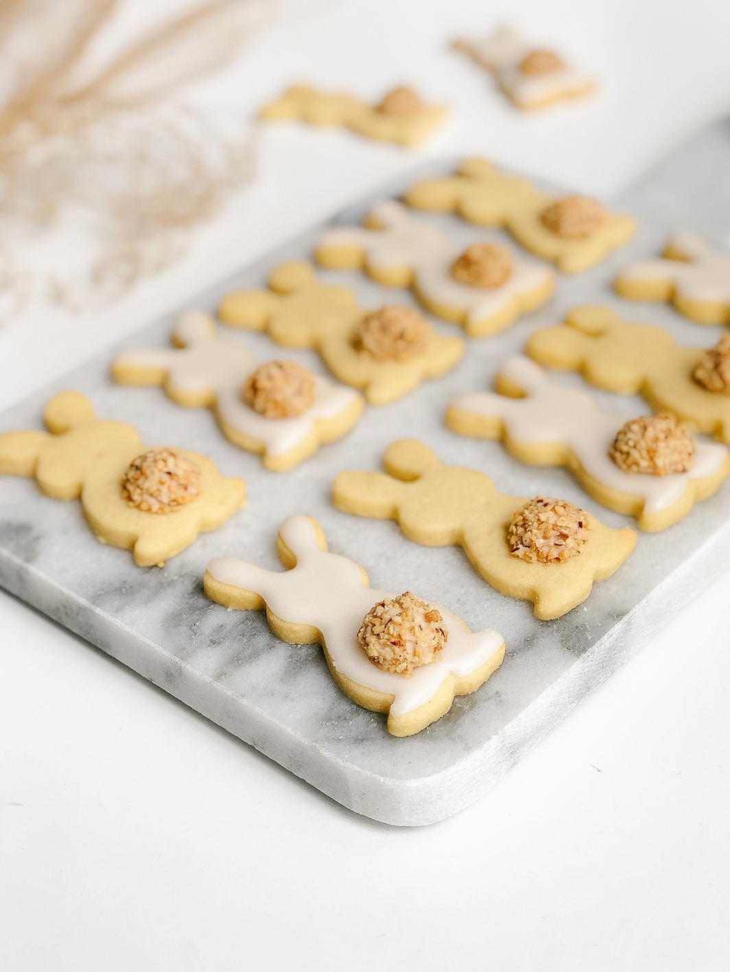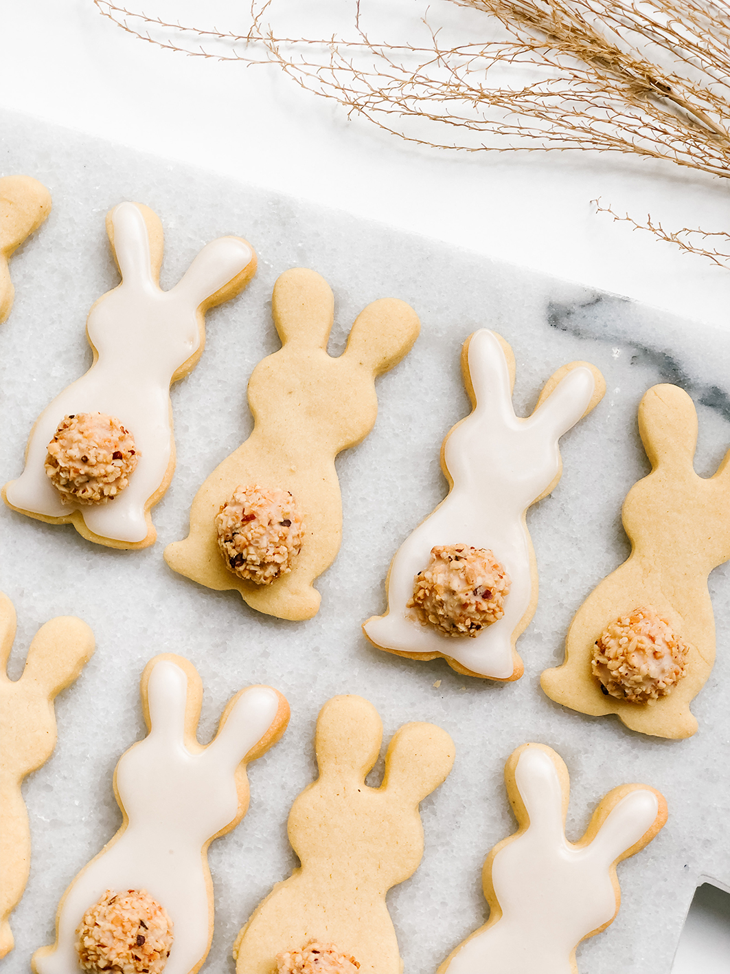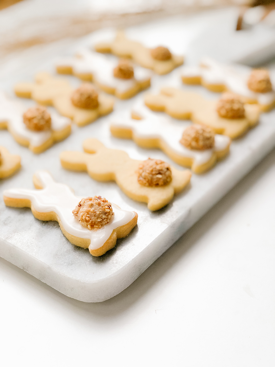 The cookies are also perfect for a bunny cake for Easter. The matching recipe with carrot cake and creme cheese frosting are also available here on the blog.
