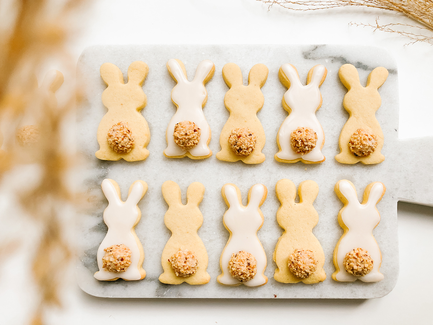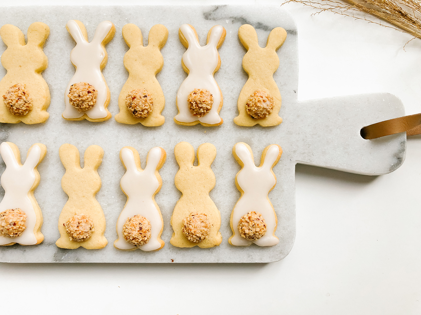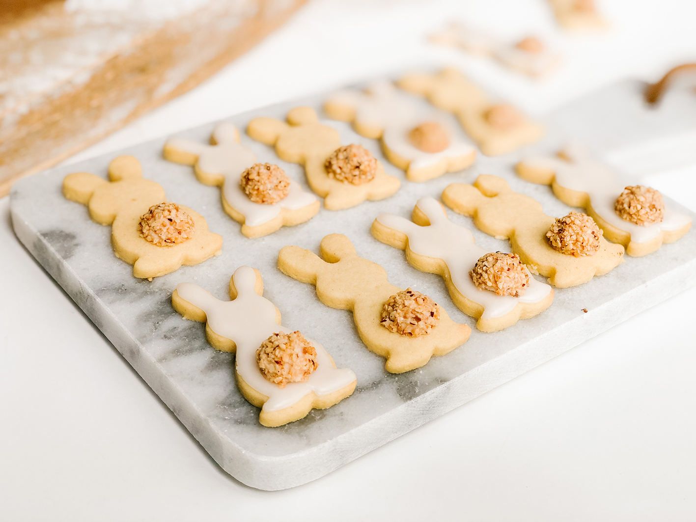 The cookies are also perfect for a bunny cake for Easter. The matching recipe with carrot cake and creme cheese frosting are also available here on the blog.