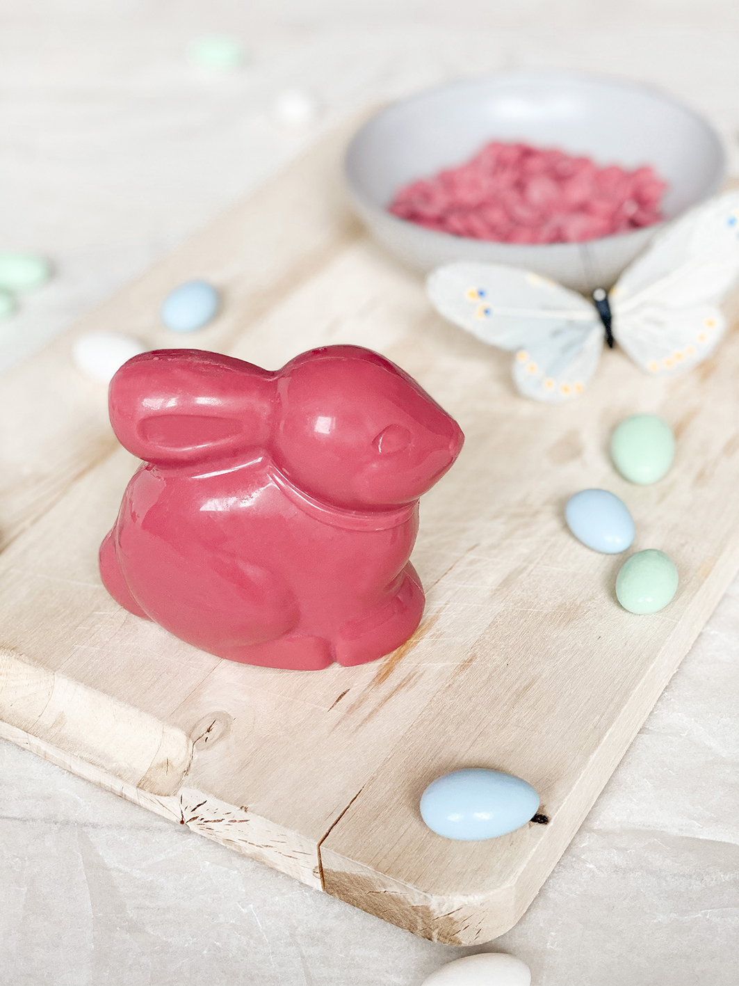 Schokohasen sind zu Ostern bei uns zuhause ein Muss. In jedem Osternest ist ein Hase versteckt und zum Osterfrühstück dürfen sie auch nicht fehlen. Leider musste ich hier in Seoul schnell feststellen, dass es einige Lebensmittel nicht gibt oder nur sehr schwer zubekommen sind. Neben Schokonikoläusen sind das auch die Schokohasen. Oder sagen wir mal so, man kann sie bekommen, aber dann zahlt man für einen Schokohasen schnell mal umgerechnet 100€. Also habe ich kurzum beschlossen die Hasen dieses mal einfach selber zu gießen. Und dem nicht genug durfte auch gleich meine geliebte Ruby Schokolade mit herhalten. Also gibt es dieses Jahr zu Ostern selbst gegossene Ruby Schokohasen.
