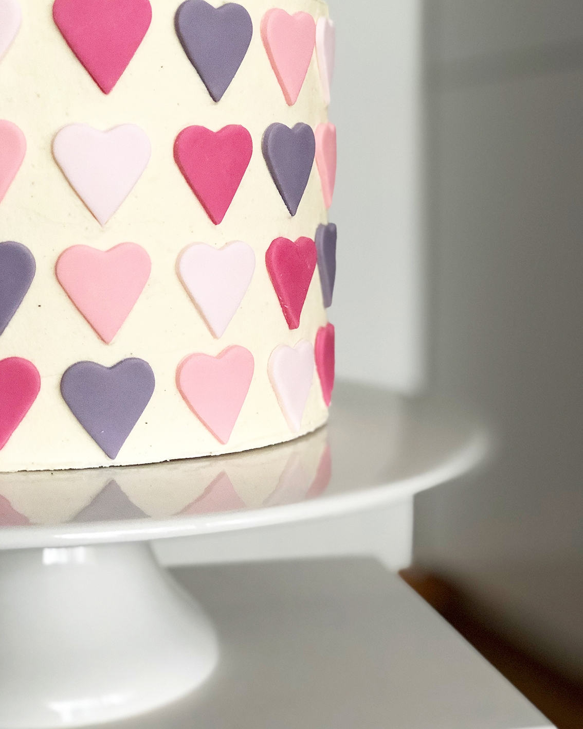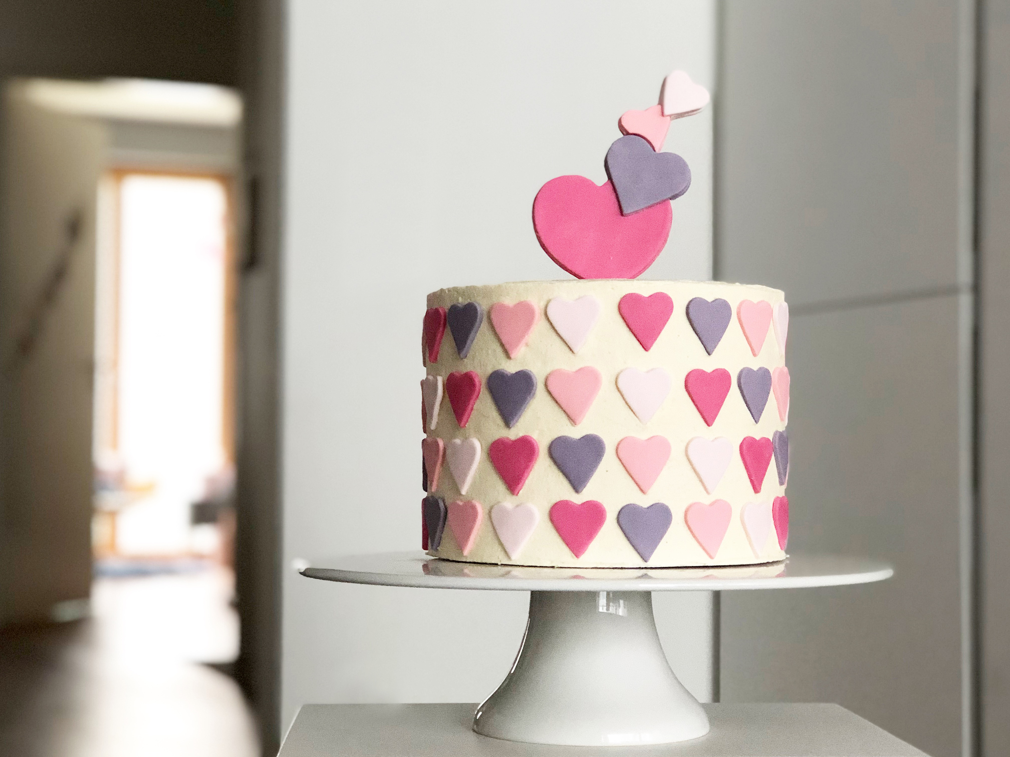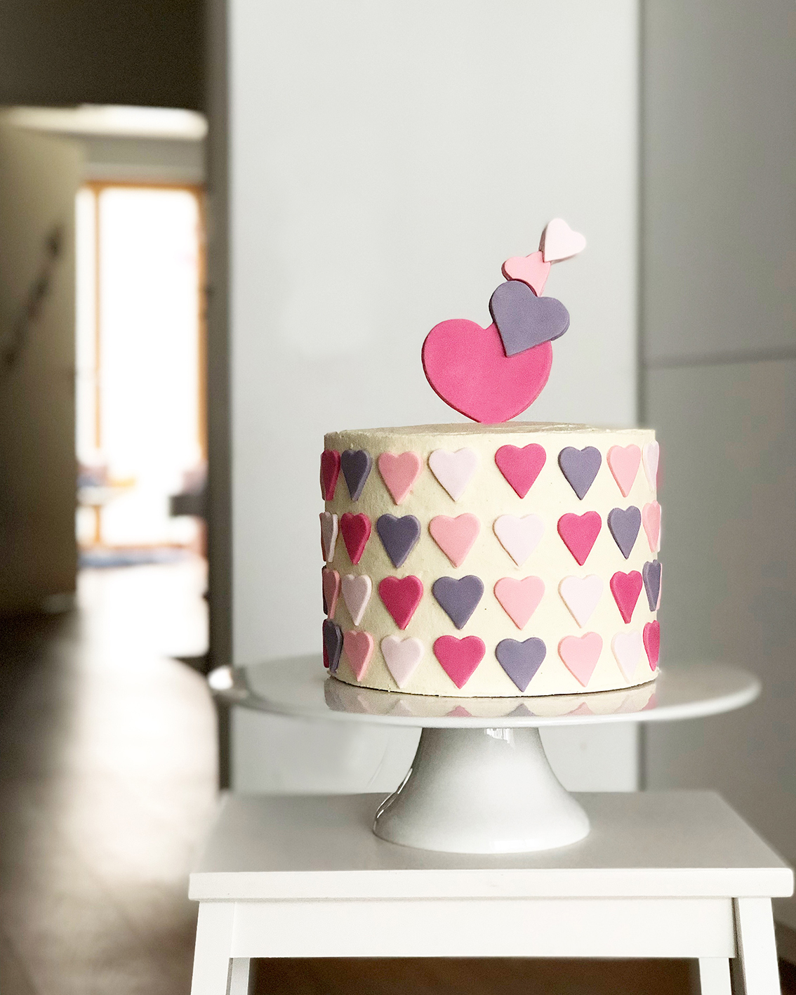 Aber Valentinstag macht auch erst richtig Spaß, wenn wir auch einen lecker Kuchen haben. Sehr schnell schwirrte mir diese Idee mit Buttercreme und Ombre-Fondant-Herzen im Kopf herum. Nach ein wenig Recherche und Brainstorming wollte ich einen in den Farben Rosa, Pink, Violett und Fuchsia machen. Gefällt euch die Kombi? Jedenfalls habe ich hier das Rezept für euch.