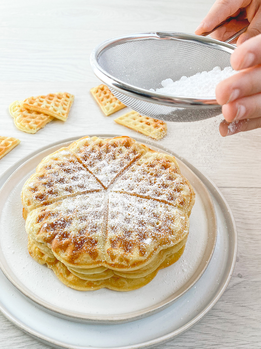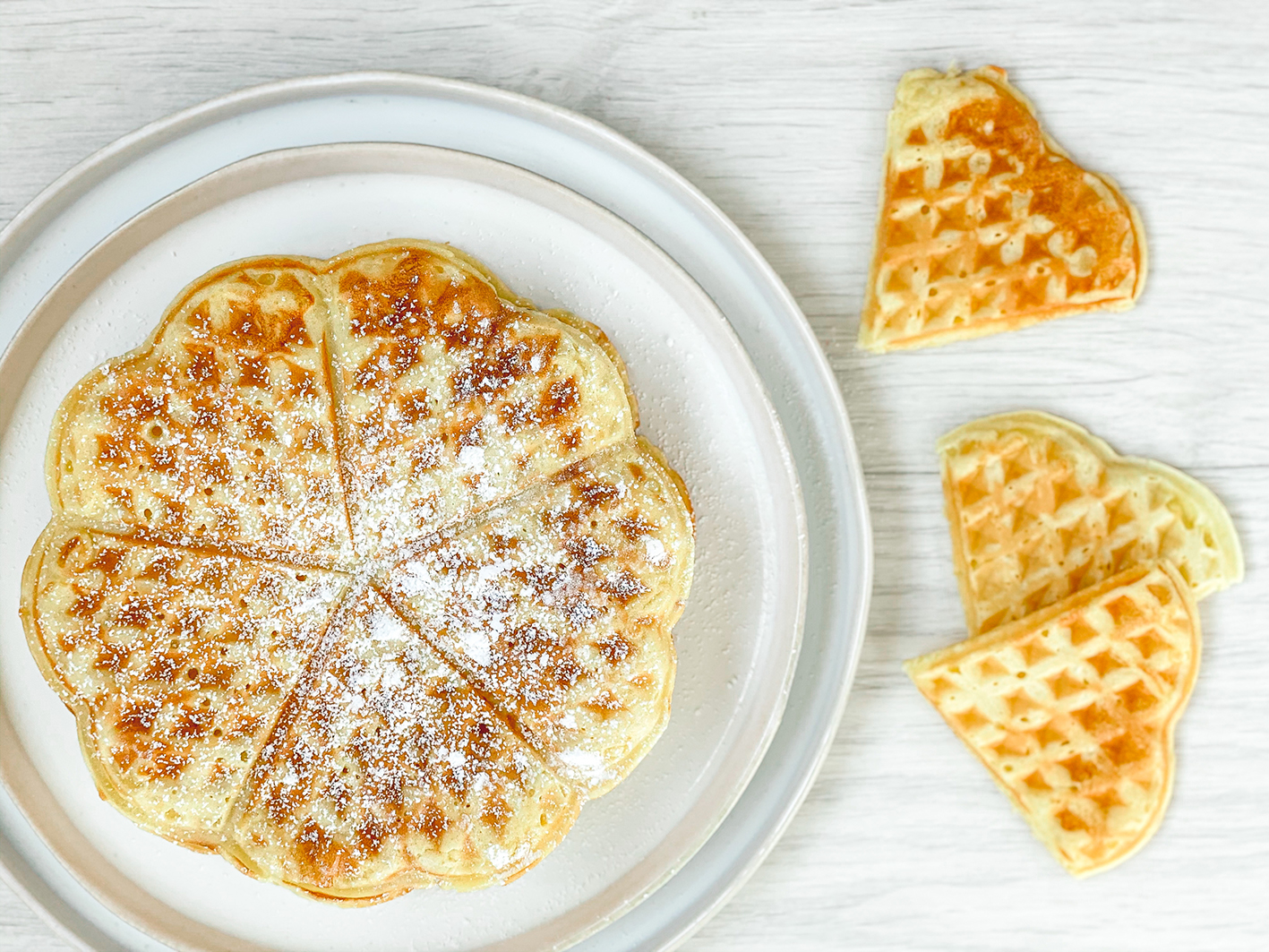 Sundays are for Waffles. Waffeln gehören definitiv zu den Lieblingsspeisen meiner Kinder, neben dem Klassiker Pfannkuchen natürlich. Wenn es nach deren Kopf gehen würde, hätten wir sie wahrscheinlich täglich auf dem Speiseplan. Und nachdem das Rezept für die Herzwaffeln bei uns so gut ankommt, möchte ich es euch natürlich nicht vorenthalten. Also einmal hier lang für die leckerste Waffel…