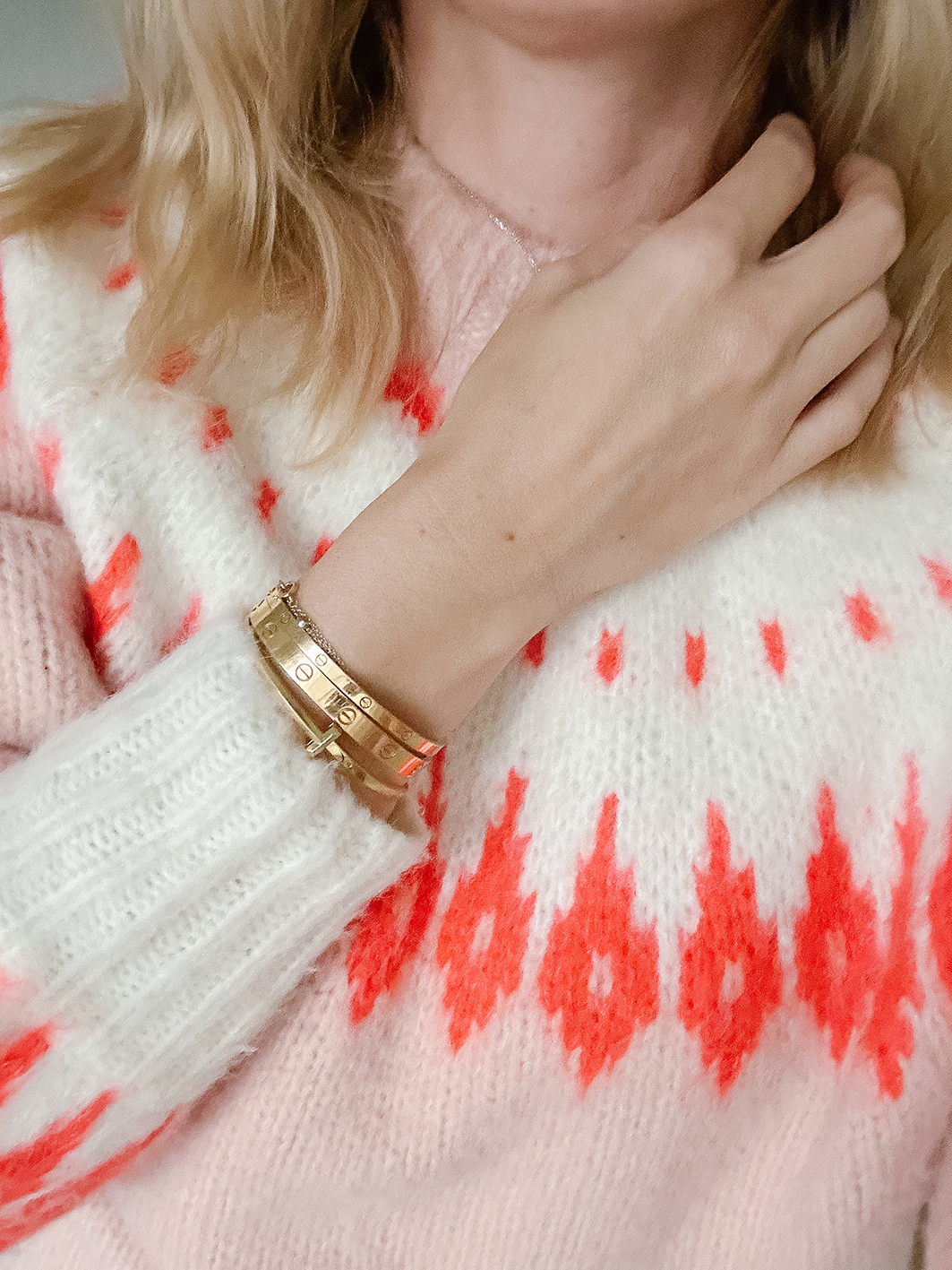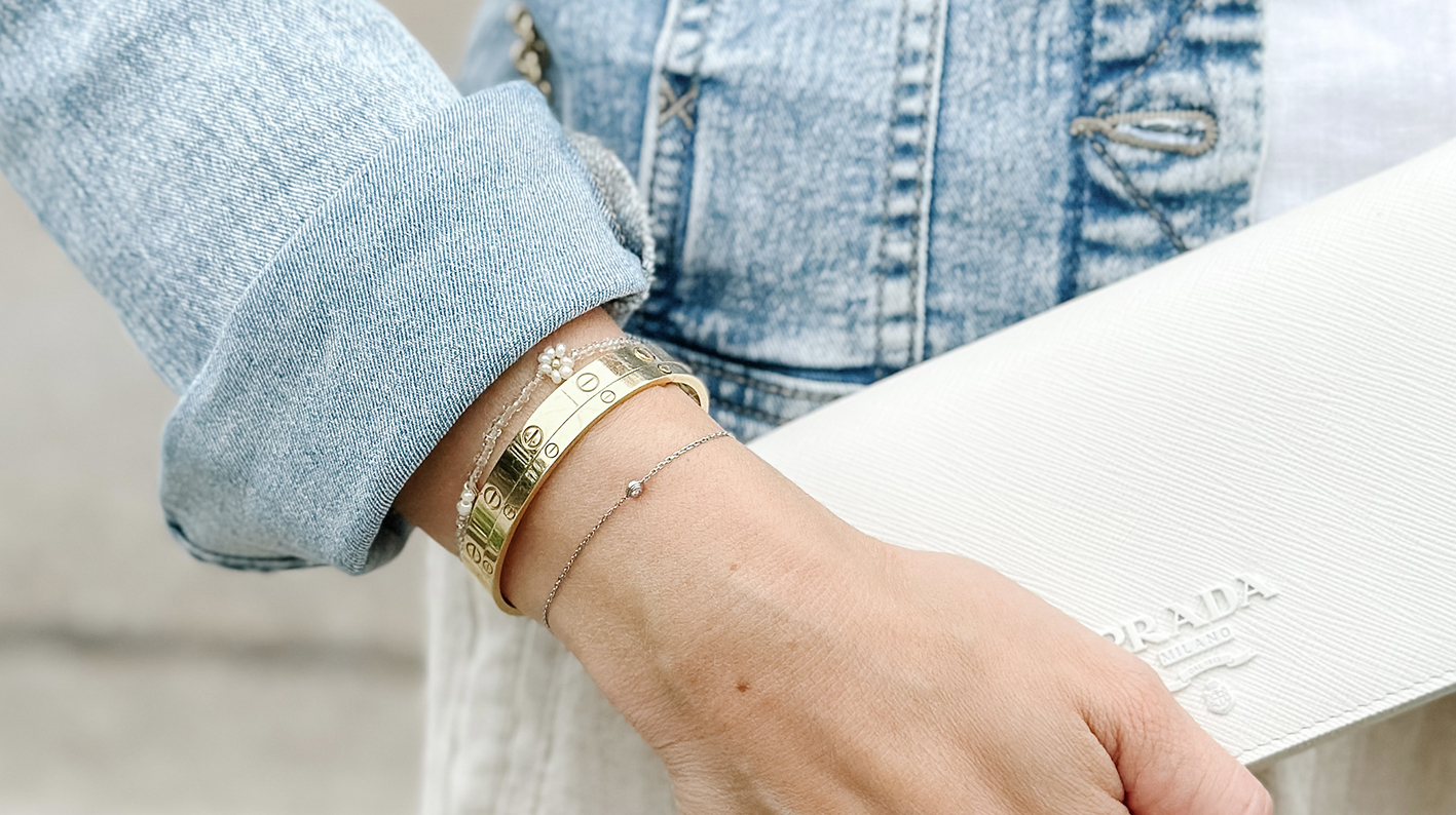 Schmuck war schon immer etwas, das für mich ein Outfit komplettiert hat. Die Größe der Ohrringe oder Länge der Kette können einen Komplett-Look nochmal in eine ganz andere Richtung lenken. Während ich früher mehr auf Quantität geachtet hatte, ist es mittlerweile die Qualität, auf die ich hauptsächlich ein Augenmerk lege. Schmuck muss für mich von guter Qualität und am besten 24/7 tragbar sein. Es gibt ein paar Ausnahmen an großen Ohrringen oder Push-Present Ringe zur Geburt meiner Kinder, die ich nicht täglich trage. Der Rest muss für mich aber praktikabel und gemütlich sein. Ich nehme meinen Alltags-Schmuck nicht mal zum schlafen ab. Daher muss dieser einiges aushalten können, egal ob beim Sport oder auf Spielplatzbesuchen. Eines dieser Schmuckstücke ist für mich auf jeden Fall der Cartier Love Armreif (gerne auch L⊝Ve geschrieben, wobei das “O” eine Schraube darstellt).