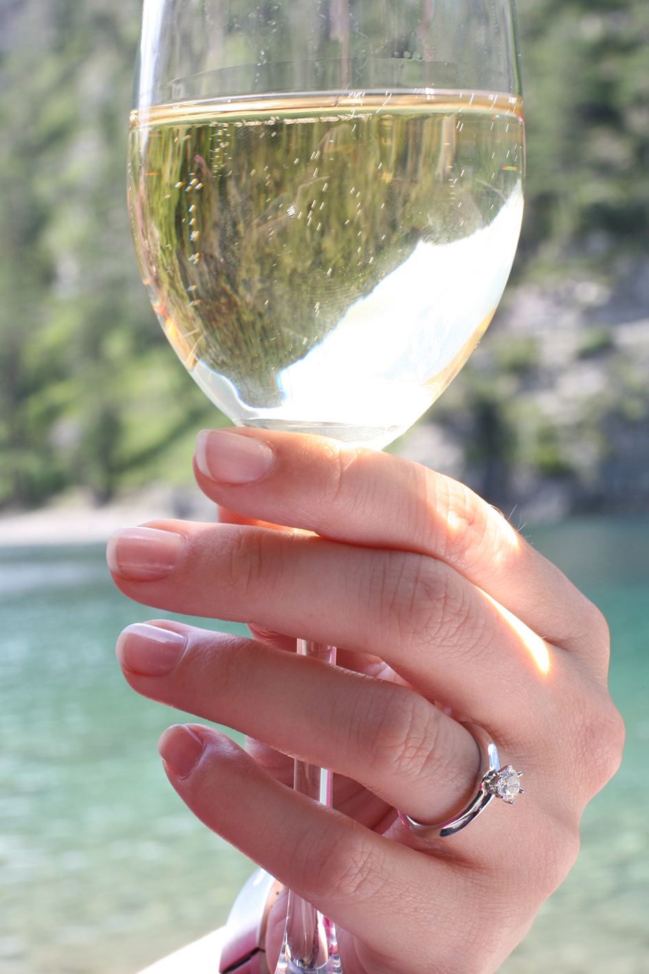 Somit packten wir die Decke, das Essen und den Champagner aus. Als wir so Arm in Arm nebeneinander saßen, fühlte ich auf einmal, wie sein Herz schneller und schneller schlug. Und auf einmal hatte er sie in der Hand: DIE schwarze Tiffany Samtbox. Ich muss gestehen, im allerersten Moment dachte ich, er würde mich veräppeln. Ich dachte, dass kann nicht war sein. Aber da war er in der Box. Der Verlobungsring. Und natürlich sagte ich JA.