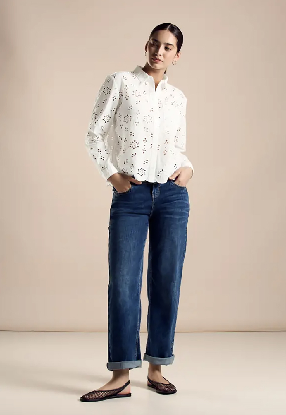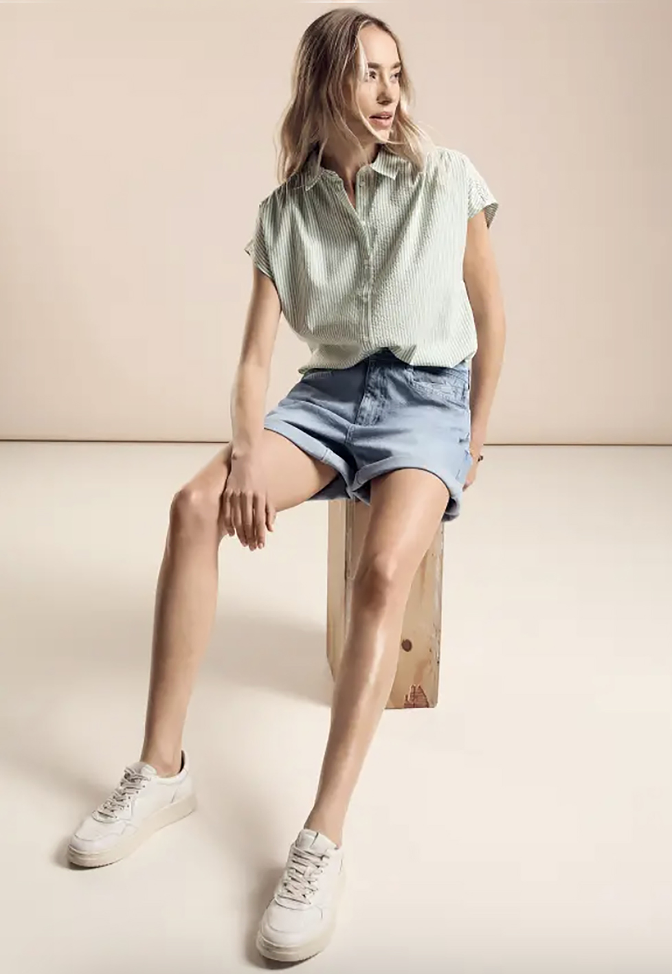 Im Sommer dürfen auch Blusen bei mir im Schrank nicht fehlen. Ich finde, man kann tatsächlich nie genug Blusen und Hemden besitzen. Mein absolutes Highlight der Blusen von Street One ist die weiße Bluse mit Stickerei in Lochspitzen-Optik. Die sieht übrigens nicht nur zu langen Bluejans gut aus, sondern kann auch wunderbar mit Shorts kombiniert werden. Egal, ob aus dünnem Sommerstoff oder Jeansstoff. Apropopos Short, wie toll sieht denn bitte die hellblaue Variante aus? Die passende hellgrün gestreife Kurzarm-Bluse vom Bild gibt es natürlich auch im Onlineshop. Und natürlich darf auch eine weiße Halbarm Bluse im Schrank nicht fehlen. Dieses Model gefällt mir besonders gut zur lockeren ripped Jeans.