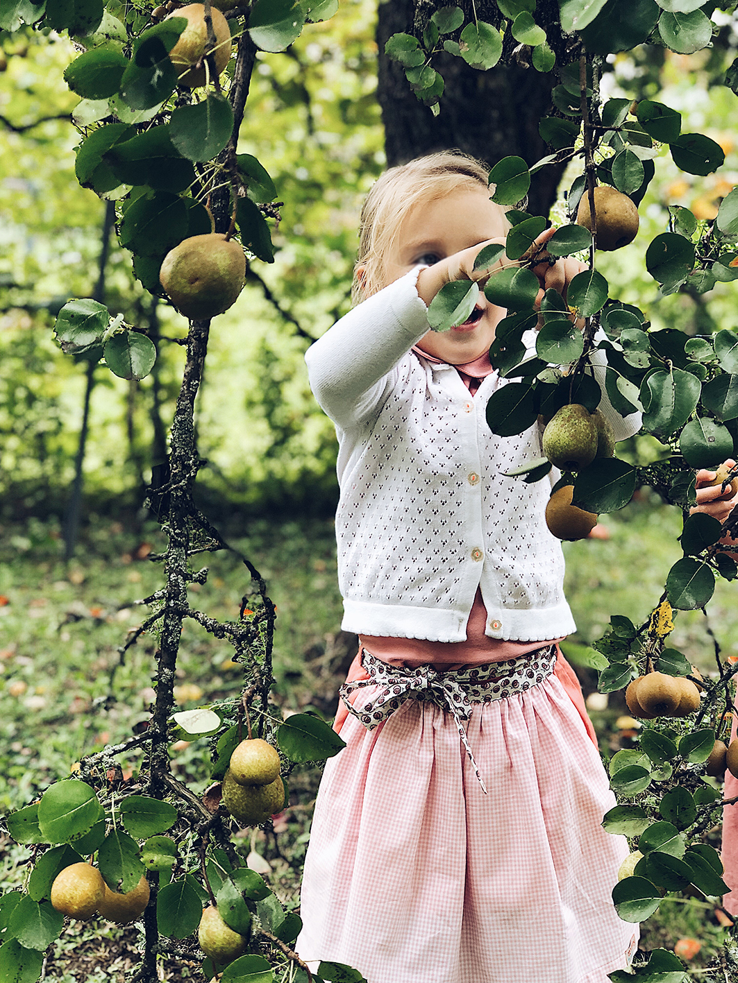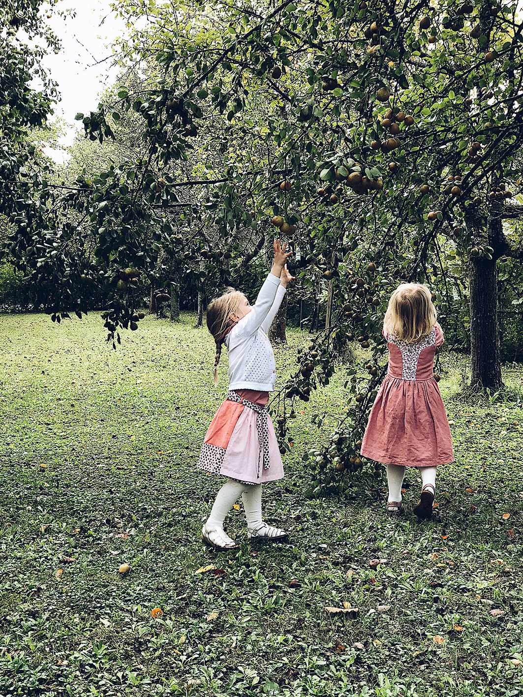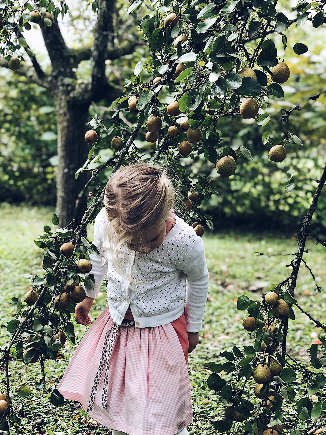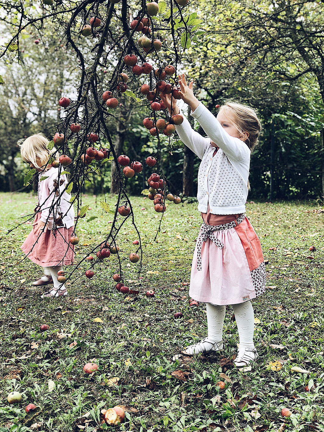 As you all know, Lia (www.silbermaedchen.com) and I have been with our girls to the family hotel Reiters Finest Reserve family hotel a view weeks ago. On one of the days we were pretty lucky with the weather and used the chance for a little photo shooting at their apple plantation. The Bavarian dresses, called Dirndl, from Nyani kids did look perfect in this scenery. Or what do you think?