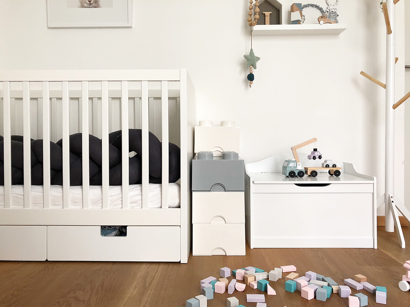 Unsere 2 Kinder teilen sich ein Zimmer und sie lieben es wirklich zusammen zu sein. Bis jetzt war es mehr das Zimmer unserer Tochter mit einem zusätzlichen Bett für unseren kleinen Jungen drin. Offensichtlich war er bisher noch etwas zu klein, um alles richtig nutzen und bespielen zu können. Langsam aber sicher ändert sich das allerdings. Er robbt und krabbelt herum und versucht auf alles zu klettern und zieht sich daran hoch. Daher dachte ich, dass es doch langsam an der Zeit ist für eine Kinderzimmer Umgestaltung.