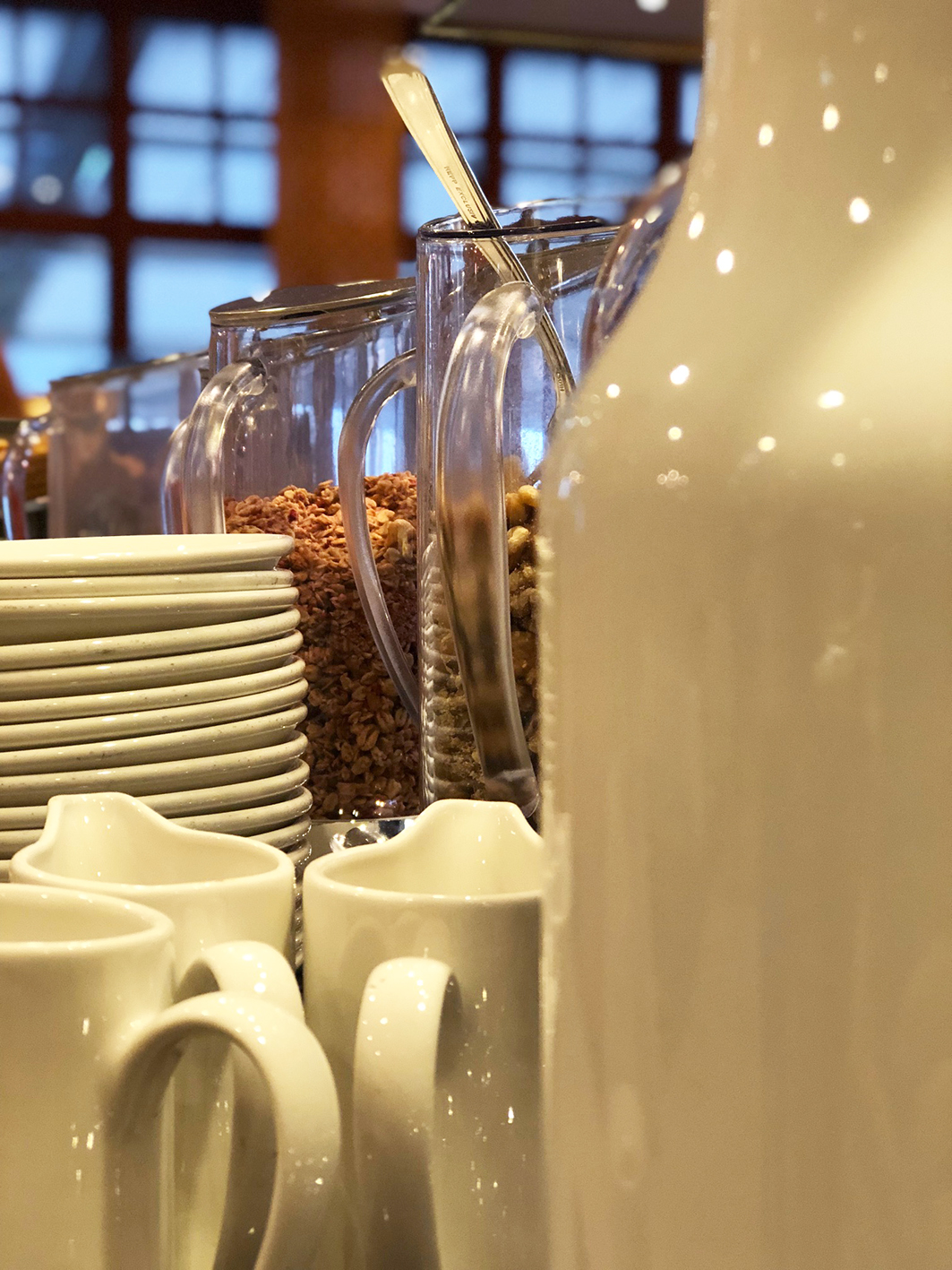 Das Frühstück besteht auf einem großen Buffet, woraus man aus einer riesigen Auswahl das Lieblingsessen auswählen kann. Mittagessen besteht auch aus einem Buffet mit Vorspeise, Hauptgericht und Nachtisch. Das Abendessen ist eine Mischung aus nur Buffet oder einer Mischung aus Buffet und a la Carte. Mein Favorit war definitv das a la Carte Abendessen. Ich bin ein Fan von serviertem Essen. Die Getränkeauswahl ist auch groß, alle mögliche Arten von Softdrinks, Wasser oder Wein. Dazwischen gibt es eine Snackbar im Eingangsbereich. Fast den ganzen Tag findet man dort Getränke, Snacks, Kuchen und Kaffee. Für Babys eine Auswahl an fast 10 verschiedenen Milchpulvern. Und falls man Mitternacht noch einen dringenden was zum Essen für die Kinde braucht: Fragt einfach an der Rezeption nach einem Müsliriegel.
