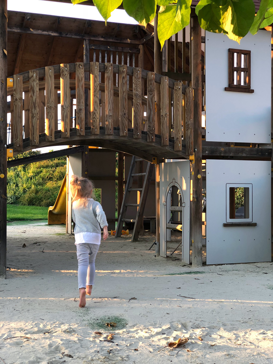 You can believe me when I tell you: Your kids won´t get bored at all. Indoor playground for 0-18 months and from 18 months on. Outdoor and indoor swimming pool with an extra play area for the smaller babies. Childcare for smaller and bigger kids. Outdoor play area with trampoline, jungle gym, swings slides… When you walk around the area you can find so much more. Simply borrow a pram or buggy from the reception and stroll around in the nature between apple and peer trees, horses, ponies, chicken, rabbits, water buffaloes and goats. If your kids want to they can take a riding lesson or simply watch the 200 animals. By the way if you are about to get rid of pacifiers, use the chance and hang them together with the kids into the pacifier tree in front of the entrance.